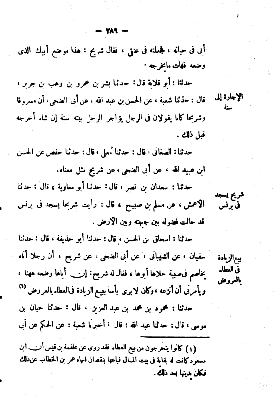 حَدَّثَنَا: الصغاني، قال: حَدَّثَنَا معلى، قال: حَدَّثَنَا حفص عَن الْحَسَنِ بْن عبيد الله، عَن أبي الضحى، عَن شريح مثل معناه.