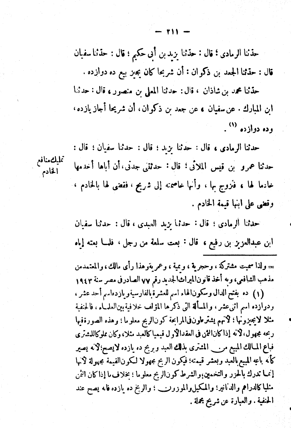 حَدَّثَنَا مُحَمَّد بْن شاذان، قال: حَدَّثَنَا المعلى بْن منصور، قال: حَدَّثَنَا ابن المبارك. عَن سُفْيَان، عَن جعد بْن ذكوان، أن شريحاً أجاز يازده، وده دوازده.