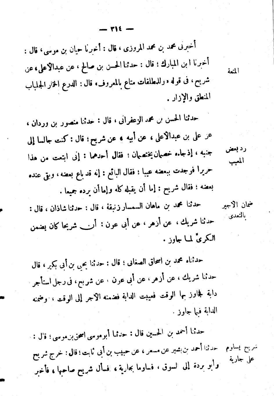 حَدَّثَنَا مُحَمَّد بْن ماهان السمسار زنبقة، قال: حَدَّثَنَا شاذان، قال: حَدَّثَنَا شريك، عَن أزهر، عَن أبي عون: أن شريحاً كان يضمن الكرى لما جاوز.