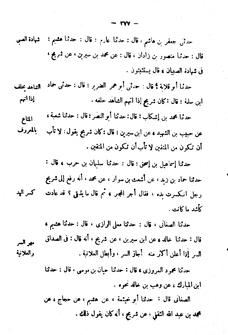 الصغاني قال: حَدَّثَنَا أَبُو خيثمة، عَن هشيم، عَن حجاج، عَن مُحَمَّد بْن عَبْد اللهِ الثقفي، عَن شريح، أنه كان يقول ذلك.