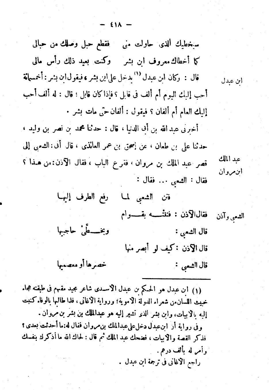 أَخْبَرَنِي عَبْد اللهِ بْن أبي الدنيا، قال: حَدَّثَنَا مُحَمَّد بْن نصر بْن وليد، حَدَّثَنَا علي بْن طعان، عَن إسحاق بْن عُمَر العائذي، قَالَ: أتى الشعبي إِلَى قصر عَبْد الملك بْن مروان، فقرع الباب،