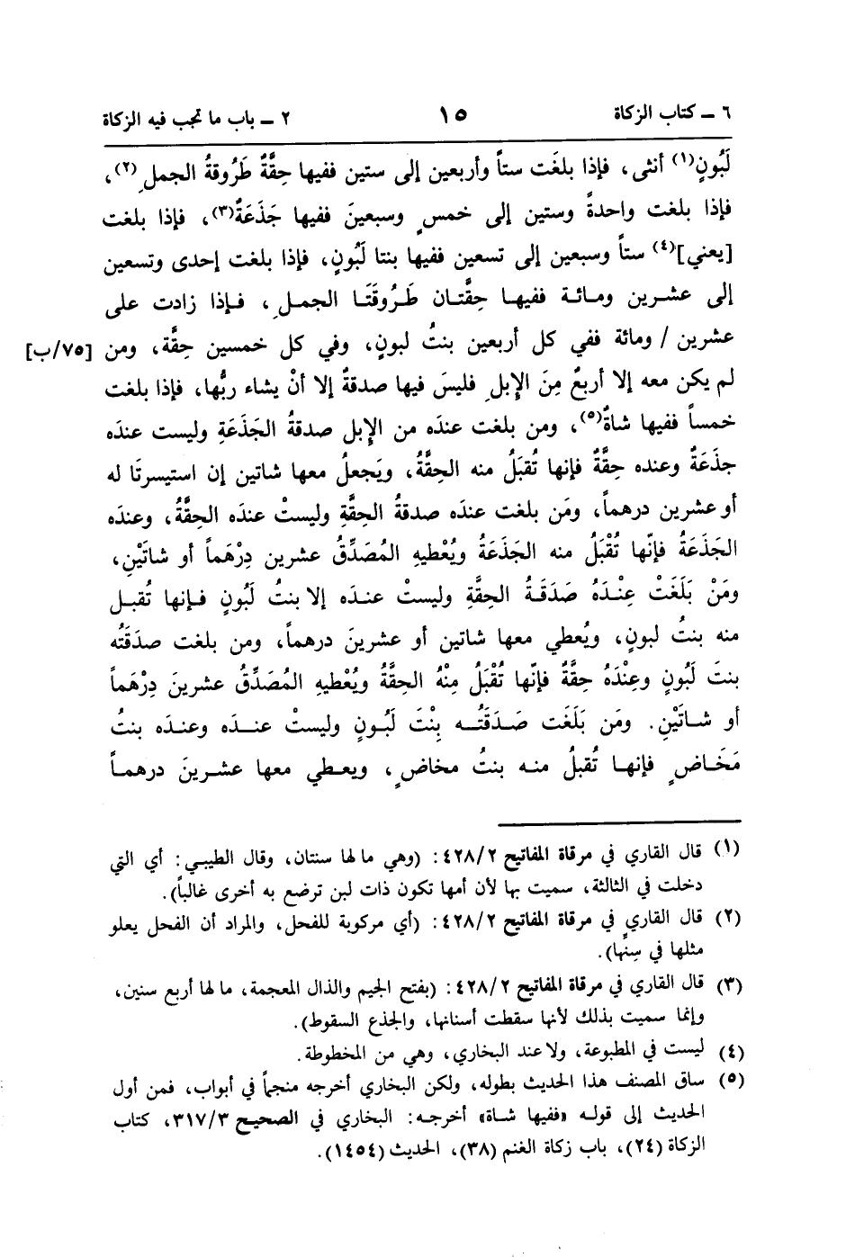 (¬5) ساق المصنف هذا الحديث بطوله، ولكن البخاري أخرجه منجمًا في أبواب، فمن أول الحديث إلى قوله "ففيها شاة" أخرجه: البخاري في الصحيح 3/ 317، كتاب الزكاة (24)، باب زكاة الغنم (38)، الحديث (1454).