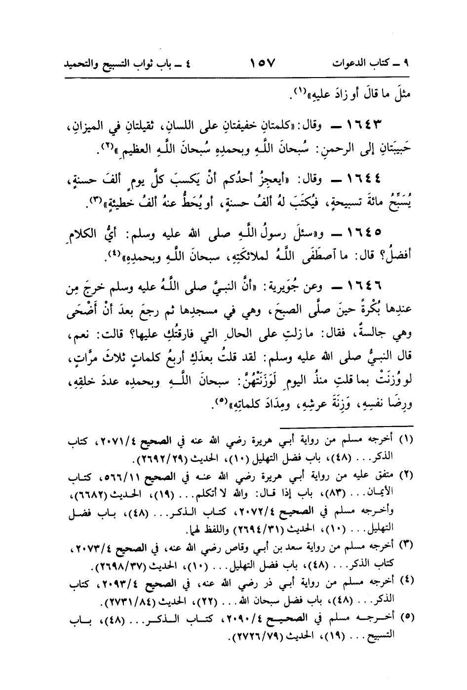 (¬4) أخرجه مسلم من رواية أبي ذر رضي اللَّه عنه، في الصحيح 4/ 2093، كتاب الذكر. . . (48)، باب فضل سبحان اللَّه. . . (22)، الحديث (84/ 2731).