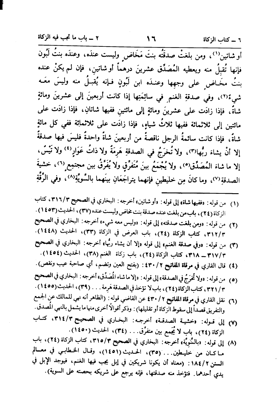 (¬1) من قوله: "ففيها شاة" إلى قوله: "أو شاتين" أخرجه: البخاري في الصحيح 3/ 316، كتاب الزكاة (24)، باب من بلغت عنده صدقة بنت مخاض وليست عنده (37)، الحديث (1453).