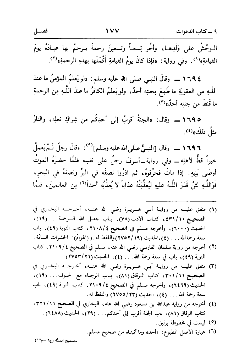 (¬2) أخرجه من رواية سلمان الفارسي رضي اللَّه عنه، مسلم في الصحيح 4/ 2109، كتاب التوبة (49)، باب في سعة رحمة اللَّه. . . (4)، الحديث (21/ 2753).