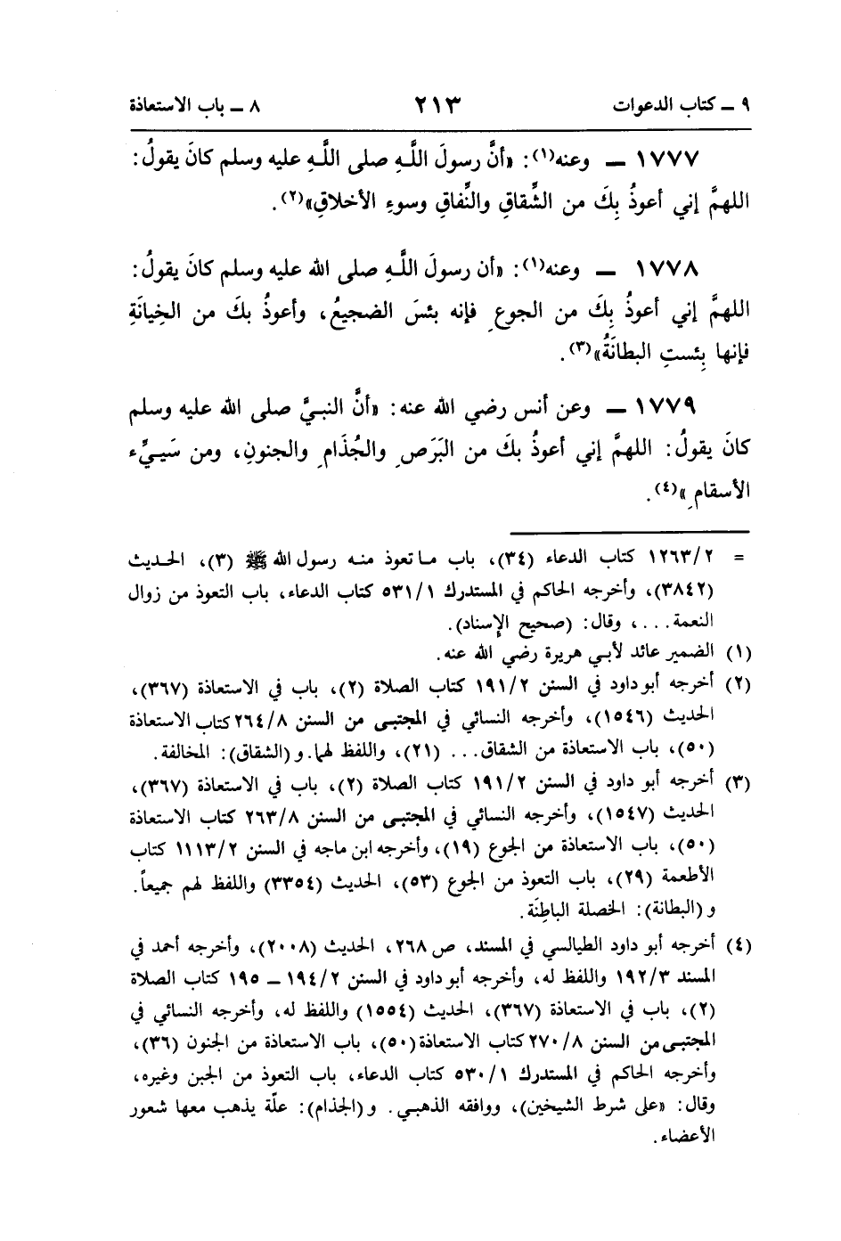1777 - وعنه (¬1): "أنَّ رسولَ اللَّه صلى اللَّهِ عليه وسلم كانَ يقولُ: اللهمَّ إني أعوذُ بِكَ من الشِّقاقِ والنِّفاقِ وسوءِ الأخلاقِ" (¬2).