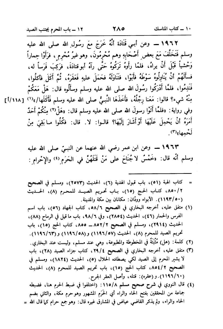 = كتاب الهبة (51)، باب قبول الهدية (6)، الحديث (2573)، ومسلم في الصحيح 2/ 850، كتاب الحج (15)، باب تحريم الصيد للمحرم (8)، الحديث (50/ 1193). الأبواء وودّان: مكانان بين مكة والمدينة.