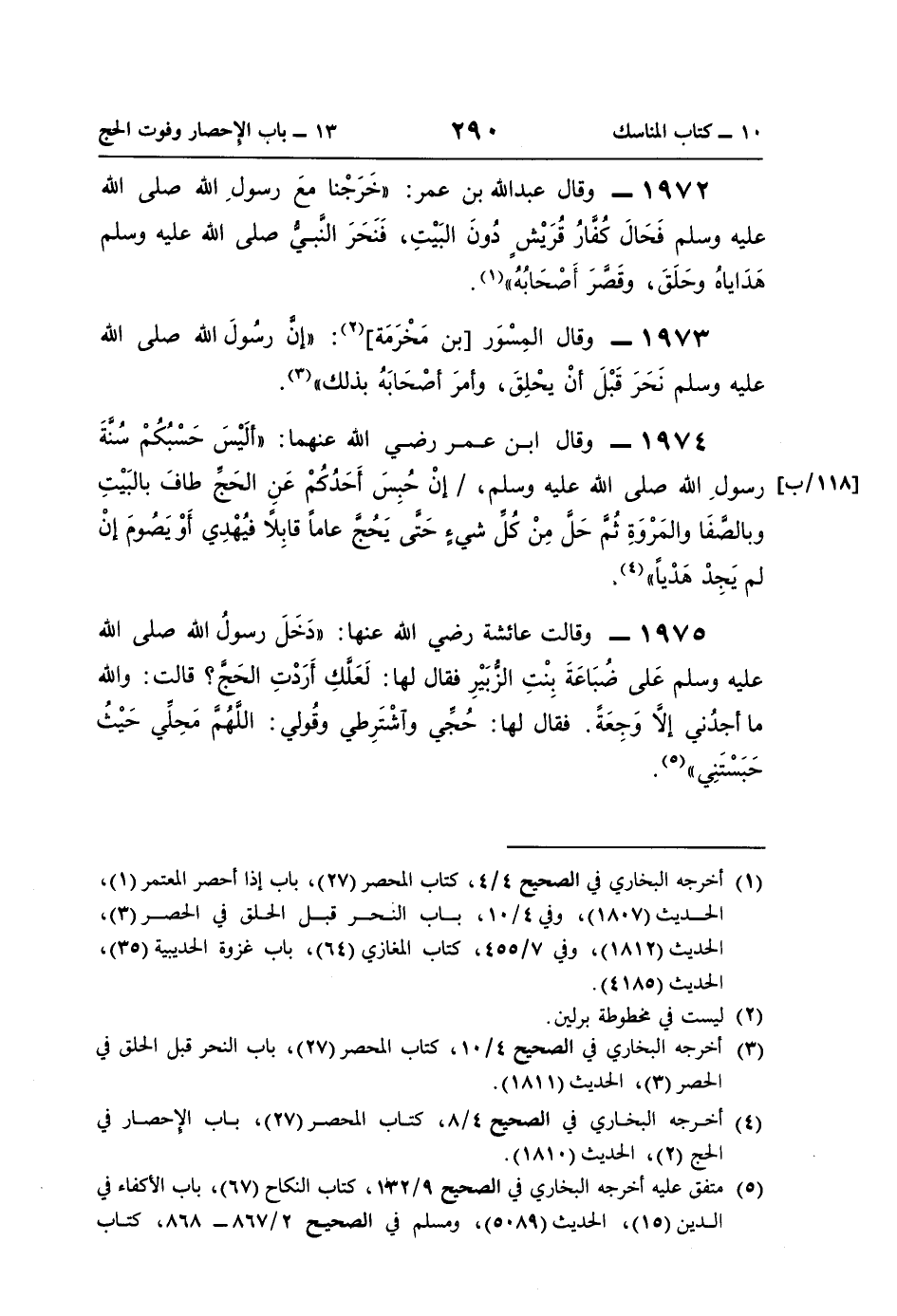 (¬4) أخرجه البخاري في الصحيح 4/ 8، كتاب المحصر (27)، باب الإحصار في الحج (2)، الحديث (1810).
