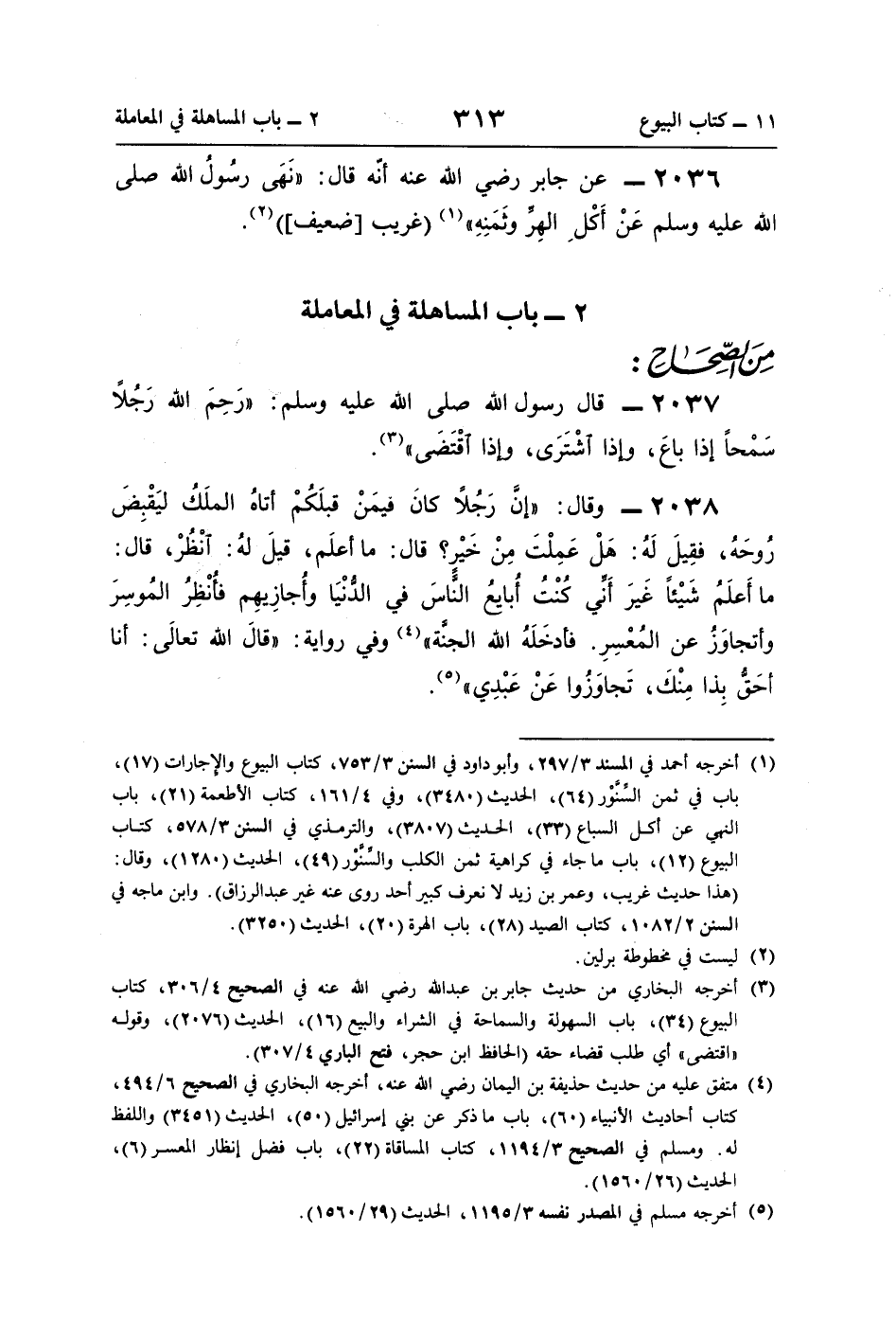 (¬3) أخرجه البخاري من حديث جابر بن عبد اللَّه رضي اللَّه عنه في الصحيح 4/ 306، كتاب البيوع (34)، باب السهولة والسماحة في الشراء والبيع (16)، الحديث (2076)، وقوله "اقتضى" أي طلب قضاء حقه (الحافظ ابن حجر، فتح الباري 4/ 307).