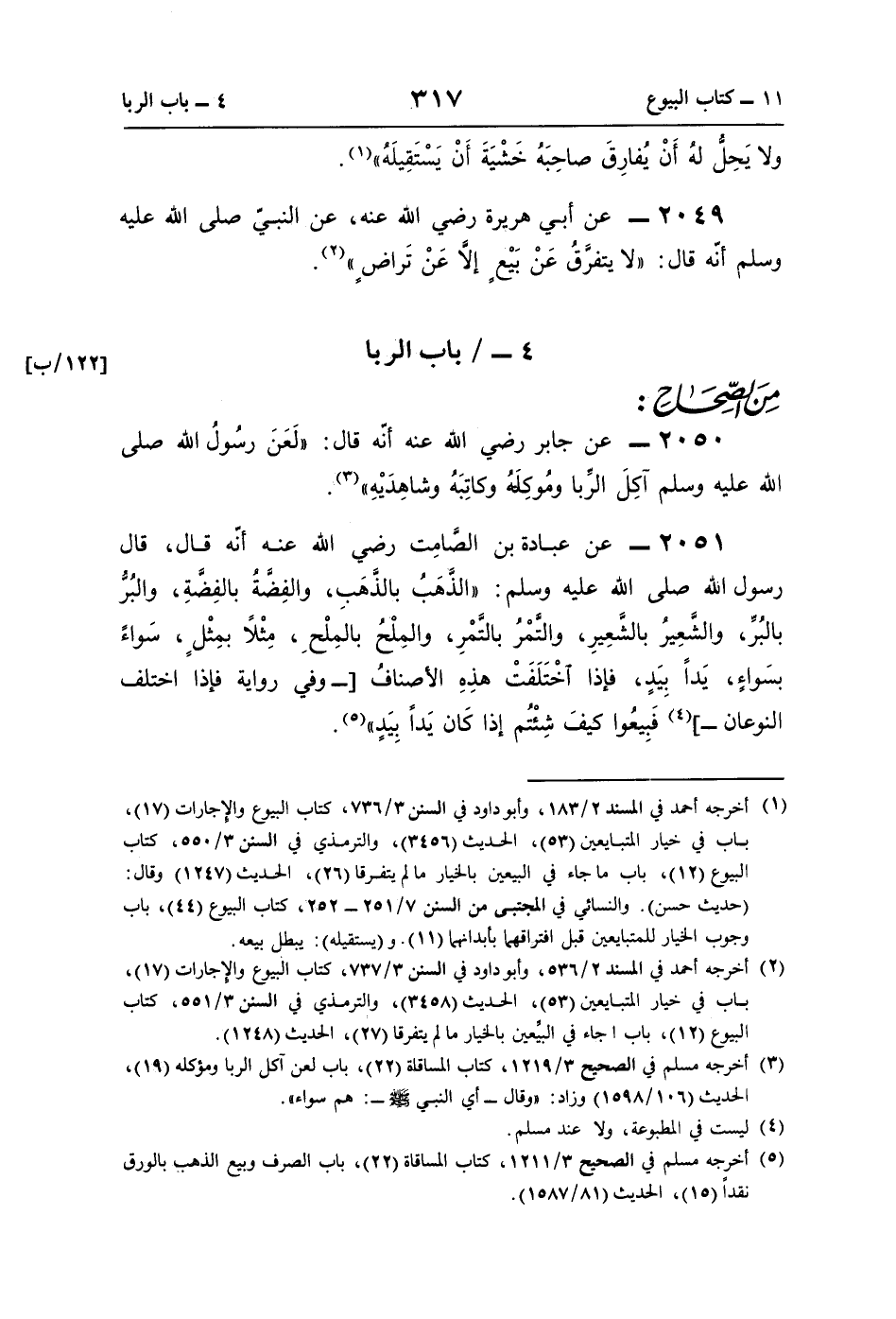 (¬5) أخرجه مسلم في الصحيح 3/ 1211، كتاب المساقاة (22)، باب الصرف وبيع الذهب بالورق نقدًا (15)، الحديث (81/ 1587).