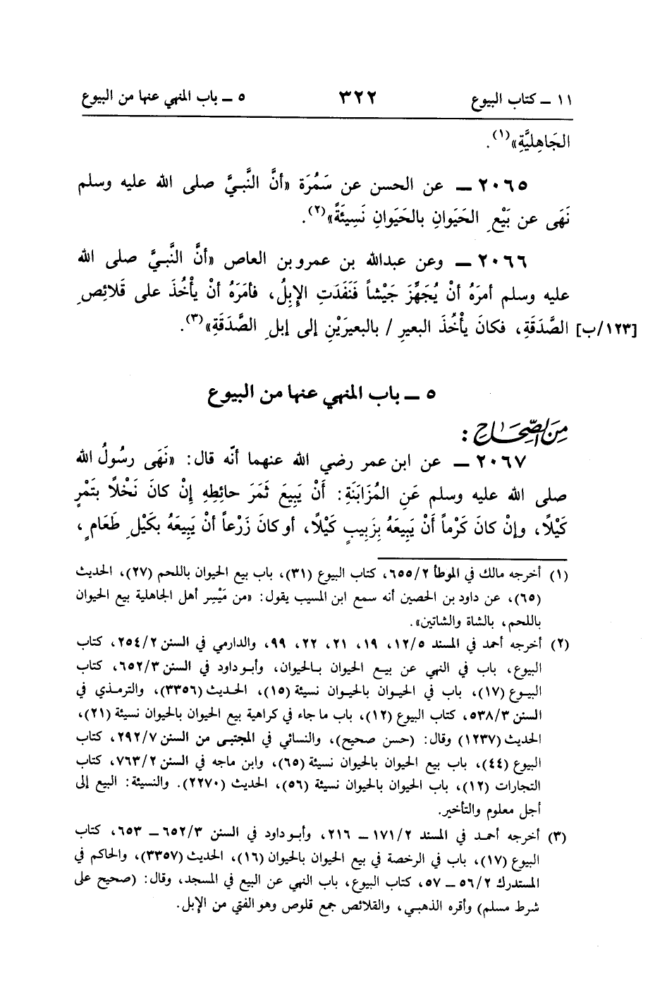 (¬3) أخرجه أحمد في المسند 2/ 171 - 216، وأبو داود في السنن 3/ 652 - 653، كتاب البيوع (17)، باب في الرخصة في بيع الحيوان بالحيوان (16)، الحديث (3357)، والحاكم في المستدرك 2/ 56 - 57، كتاب البيوع، باب النهى عن البيع في المسجد، وقال: (صحيح على شرط مسلم) وأقره الذهبي، والقلائص جمع قلوص وهو الفتى من الإبل.