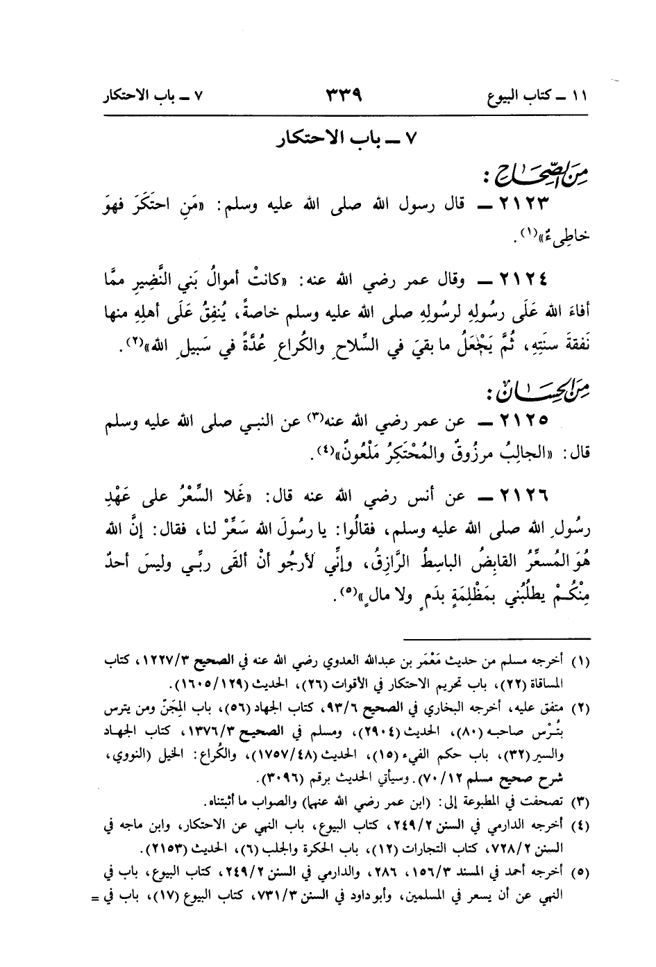 2125 - عن عمر رضي اللَّه عنه (¬3) عن النَّبيّ صلى اللَّه عليه وسلم قال: "الجالِبُ مرزُوقٌ والمُحْتَكِرُ مَلْعُونٌ" (¬4).