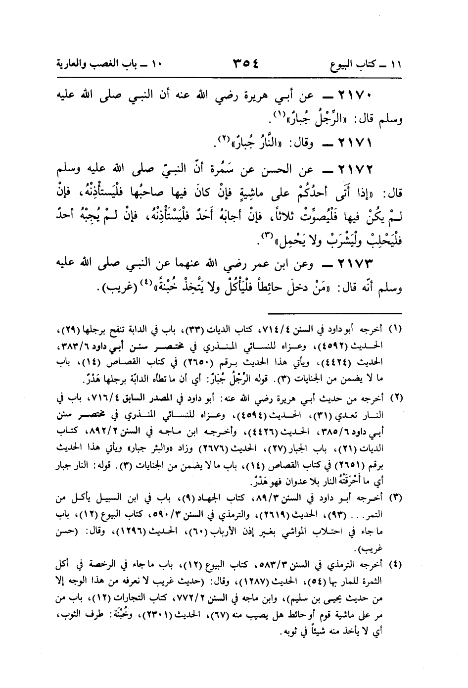 2170 - عن أبي هريرة رضي اللَّه عنه أن النَّبي صلى اللَّه عليه وسلم قال: "الرِّجْلُ جُبارٌ" (¬1).