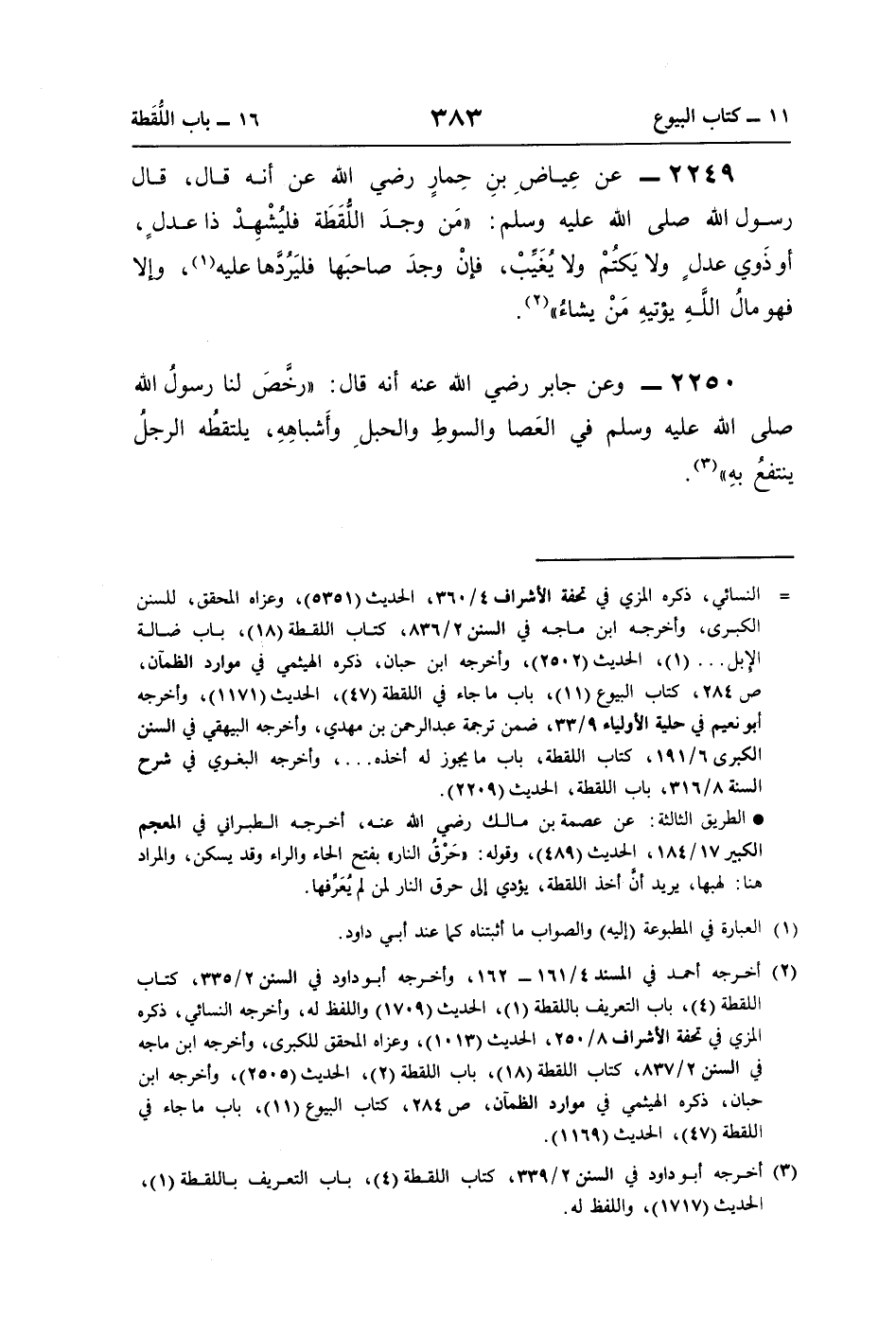 2249 - عن عِياضِ بنِ حِمارٍ رضي اللَّه عن أنّه قال، قال رسول اللَّه صلى اللَّه عليه وسلم: "مَن وجدَ اللُّقَطَة فليُشْهِدْ ذا عدلٍ، أو ذَوي عدلٍ ولا يَكتُمْ ولا يُغَيِّبْ، فإنْ وجدَ صاحبَها فليَرُدَّها عليه (¬1)، وإلا فهو مالُ اللَّهِ يؤْتيهِ مَنْ يشاءُ" (¬2).