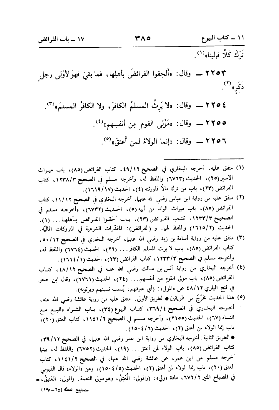 (¬4) أخرجه البخاري من رواية أنس بن مالك رضي اللَّه عنه في الصحيح 12/ 48، كتاب الفرائض (85)، باب مولى القوم من أنفسهم. . . (24)، الحديث (6761)، وقال ابن حجر في فتح الباري 12/ 48 عن "المولى": (أي عتيقهم، يُنسب نسبتهم ويرثونه).