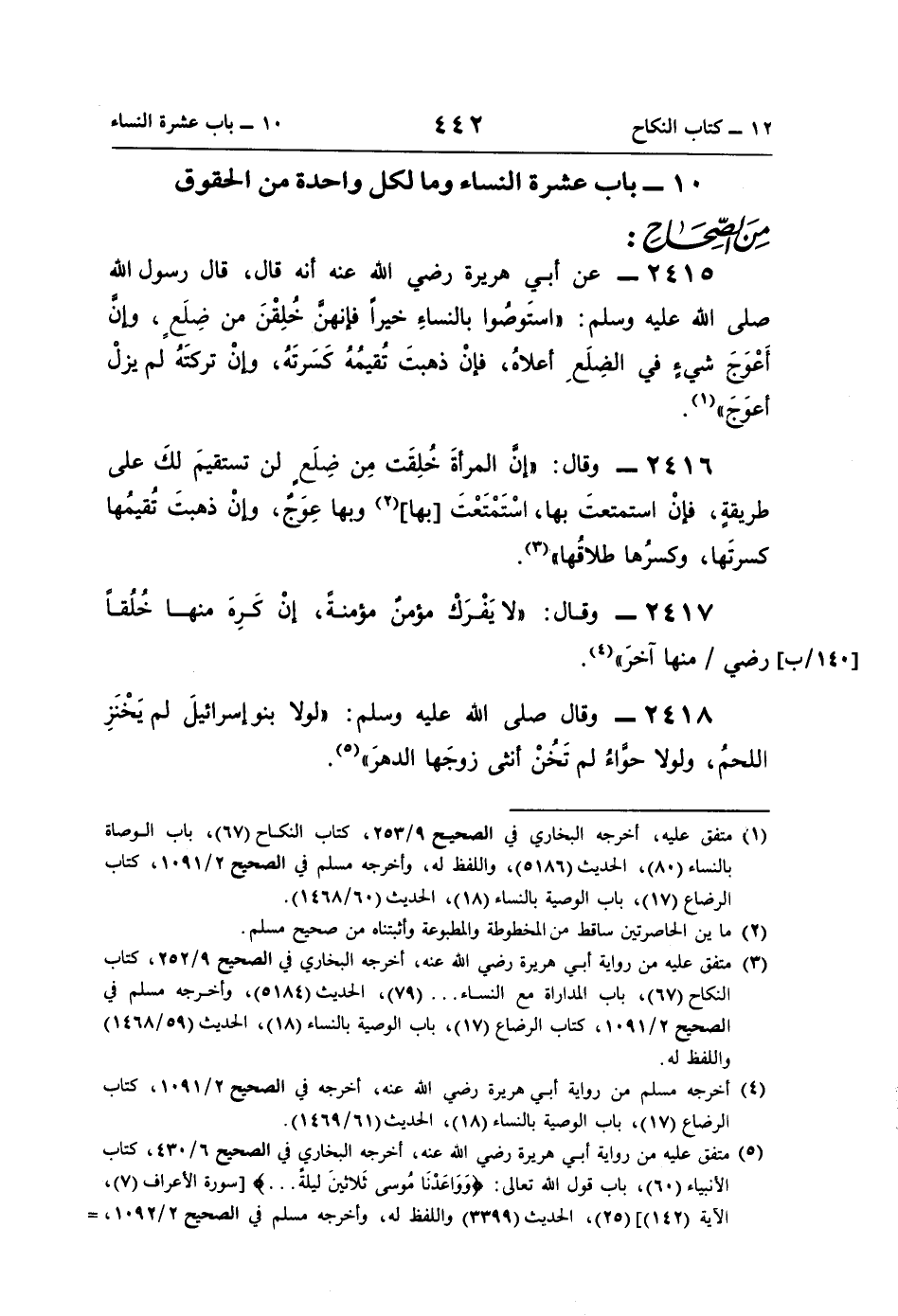 (¬4) أخرجه مسلم من رواية أبي هريرة رضي اللَّه عنه، أخرجه في الصحيح 2/ 1091، كتاب الرضاع (17)، باب الوصية بالنساء (18)، الحديث (61/ 1469).