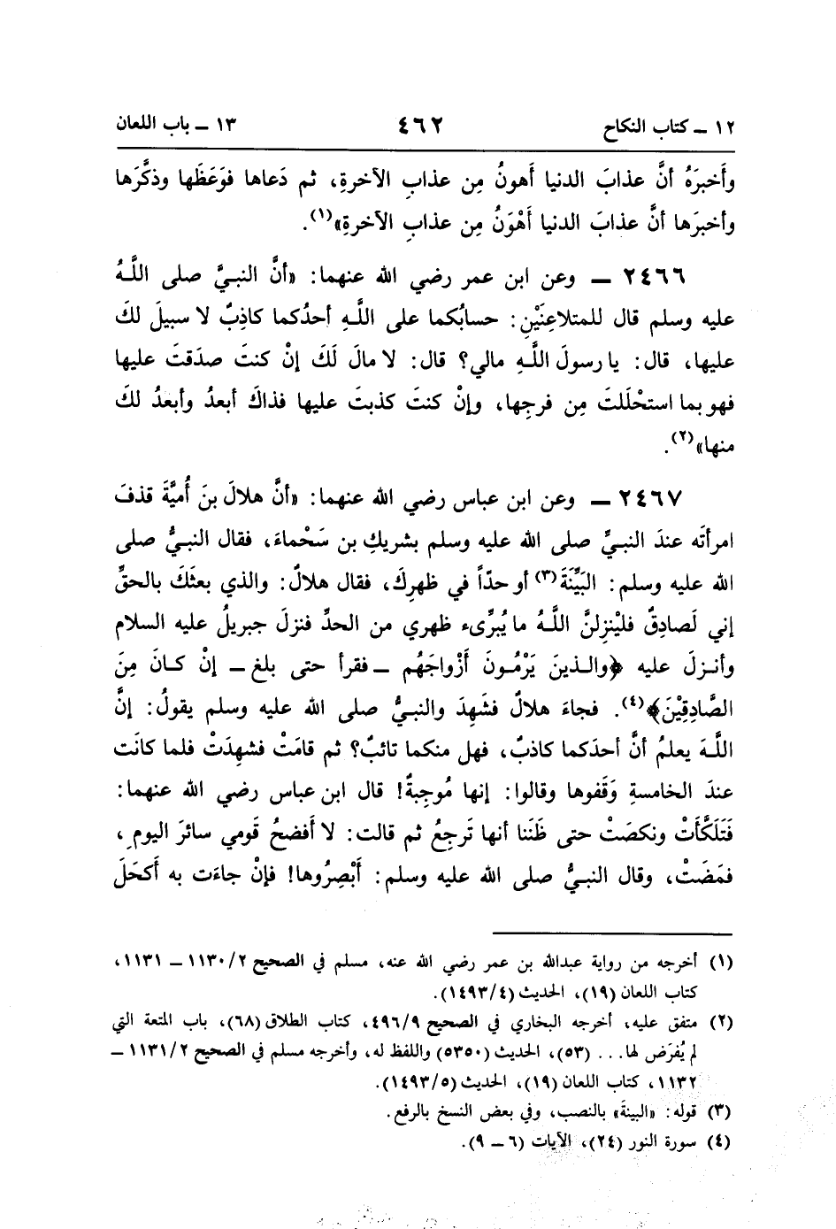 (¬1) أخرجه من رواية عبد اللَّه بن عمر رضي اللَّه عنه، مسلم في الصحيح 2/ 1130 - 1131، كتاب اللعان (19)، الحديث (4/ 1493).