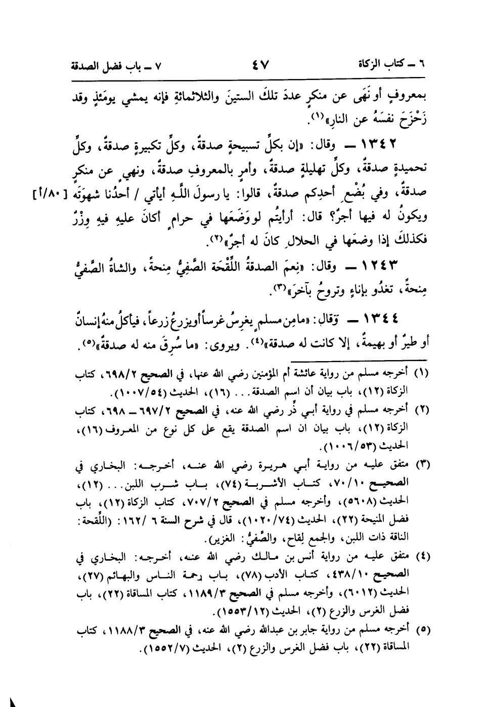 (¬2) أخرجه مسلم في رواية أبي ذر رضي اللَّه عنه، في الصحيح 2/ 697 - 698، كتاب الزكاة (12)، باب بيان إن اسم الصدقة يقع على كل نوع من المعروف (16)، الحديث (53/ 1006).