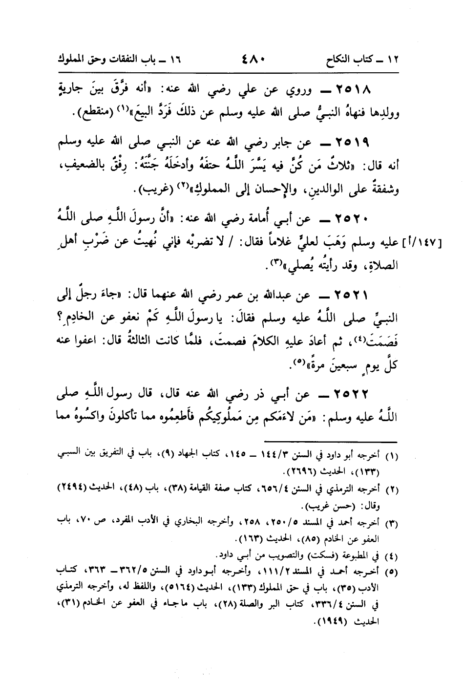 (¬3) أخرجه أحمد في المسند 5/ 250، 258، وأخرجه البخاري في الأدب المفرد، ص 70، باب العفو عن الخادم (85)، الحديث (163).