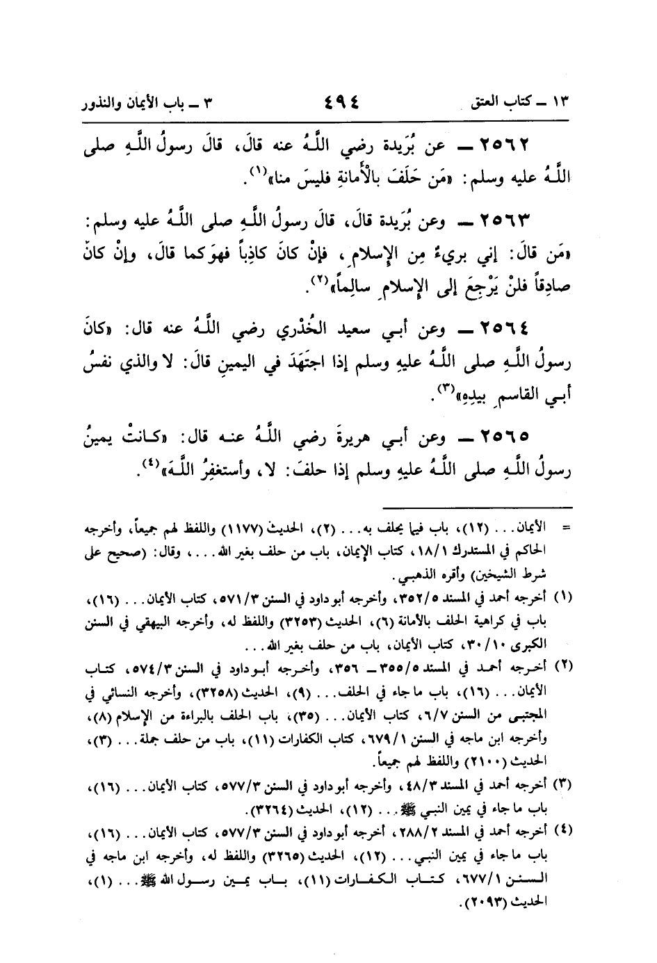 2562 - عن بُرَيدة رضي اللَّهُ عنه قالَ، قالَ رسولُ اللَّهِ صلى اللَّهُ عليه وسلم: "مَن حَلَفَ بالْأَمانةِ فليسَ منا" (¬1).