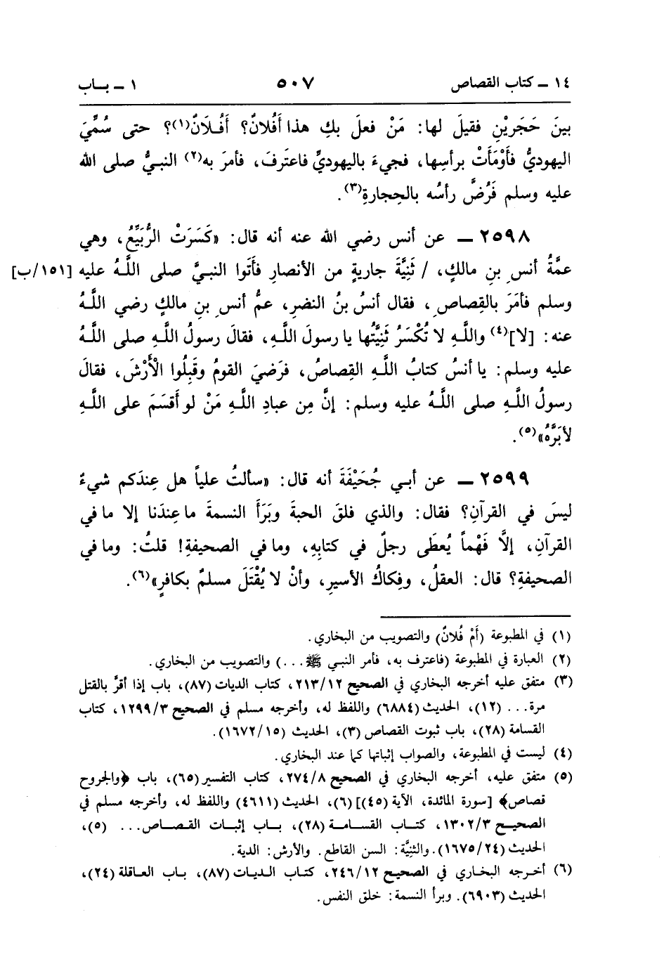 (¬3) متفق عليه أخرجه البخاري في الصحيح 12/ 213، كتاب الديات (87)، باب إذا أقرَّ بالقتل مرة. . . (12)، الحديث (6884) واللفظ له، وأخرجه مسلم في الصحيح 3/ 1299، كتاب القسامة (28)، باب ثبوت القصاص (3)، الحديث (15/ 1672).
