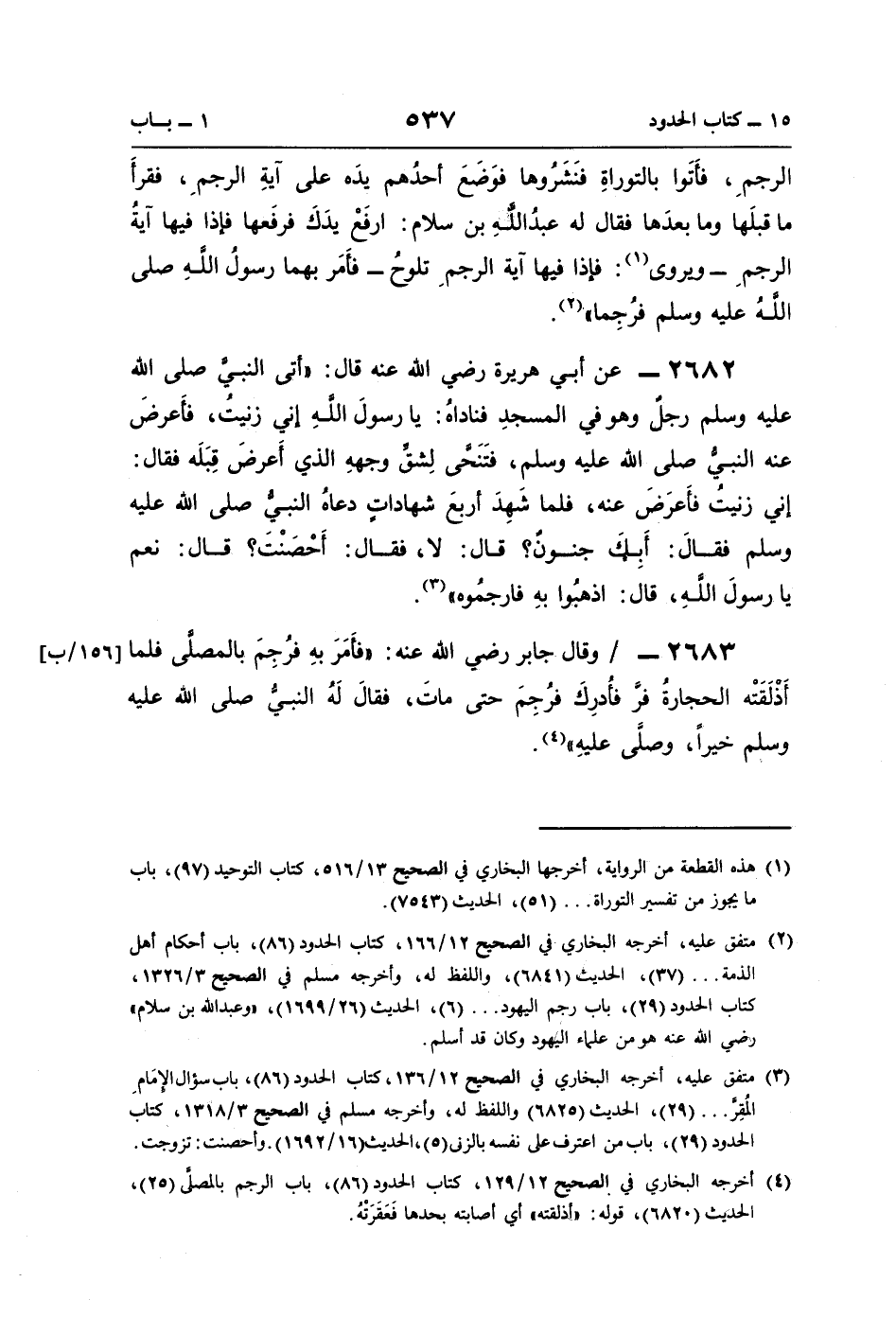 (¬3) متفق عليه، أخرجه البخاري في الصحيح 12/ 136، كتاب الحدود (86)، باب سؤال الإمَامِ المُقِرَّ. . . (29)، الحديث (6825) واللفظ له، وأخرجه مسلم في الصحيح 3/ 1318، كتاب الحدود (29)، باب من اعترف على نفسه بالزنى (5)، الحديث (16/ 1692). وأحصنت: تزوجت.
