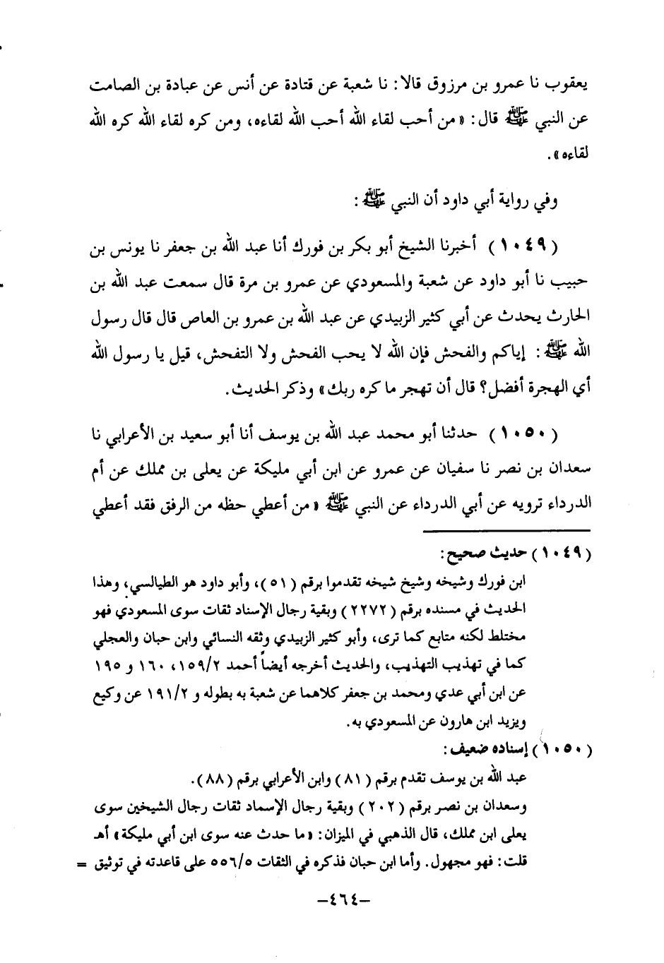 1049 - أَخْبَرَنَا الشَّيْخُ أَبُو بَكْرِ بْنُ فُورَكٍ، أنا عَبْدُ اللَّهِ بْنُ جَعْفَرٍ، نا يُونُسُ بْنُ حَبِيبٍ، نا أَبُو دَاوُدَ، عَنْ شُعْبَةَ، وَالْمَسْعُودِيُّ، عَنْ عَمْرِو بْنِ مُرَّةَ، قَالَ: سَمِعْتُ عَبْدَ اللَّهِ بْنَ الْحَارِثِ، يُحَدِّثُ عَنْ أَبِي كَثِيرٍ الزُّبَيْدِيِّ، عَنْ عَبْدِ اللَّهِ بْنِ عَمْرِو بْنِ الْعَاصِ، قَالَ: قَالَ رَسُولُ اللَّهِ صَلَّى اللهُ عَلَيْهِ وَسَلَّمَ: «§إِيَّاكُمْ وَالْفُحْشَ؛ فَإِنَّ اللَّهَ لَا يُحِبُّ الْفُحْشَ وَلَا التَّفَحُّشَ» . قِيلَ: يَا رَسُولَ اللَّهِ، أَيُّ الْهِجْرَةِ أَفْضَلُ؟ قَالَ: «أَنْ تَهْجُرَ مَا كَرِهَ رَبُّكَ» . وَذَكَرَ الْحَدِيثَ