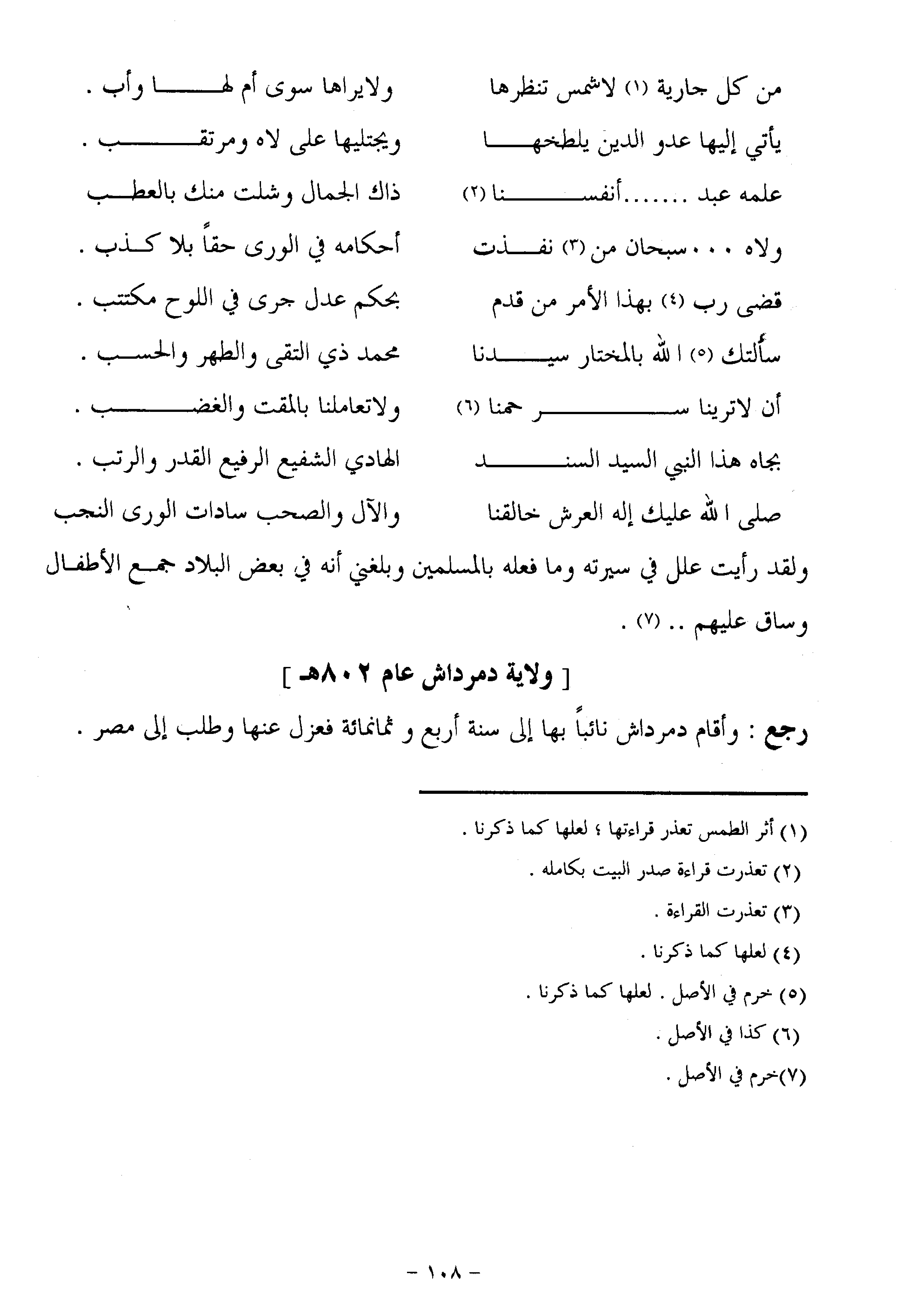 رجع: وأقام دمرداش نائبا بها إلى سنة أربع وثمانمائة فعزل عنها وطلب إلى مصر.