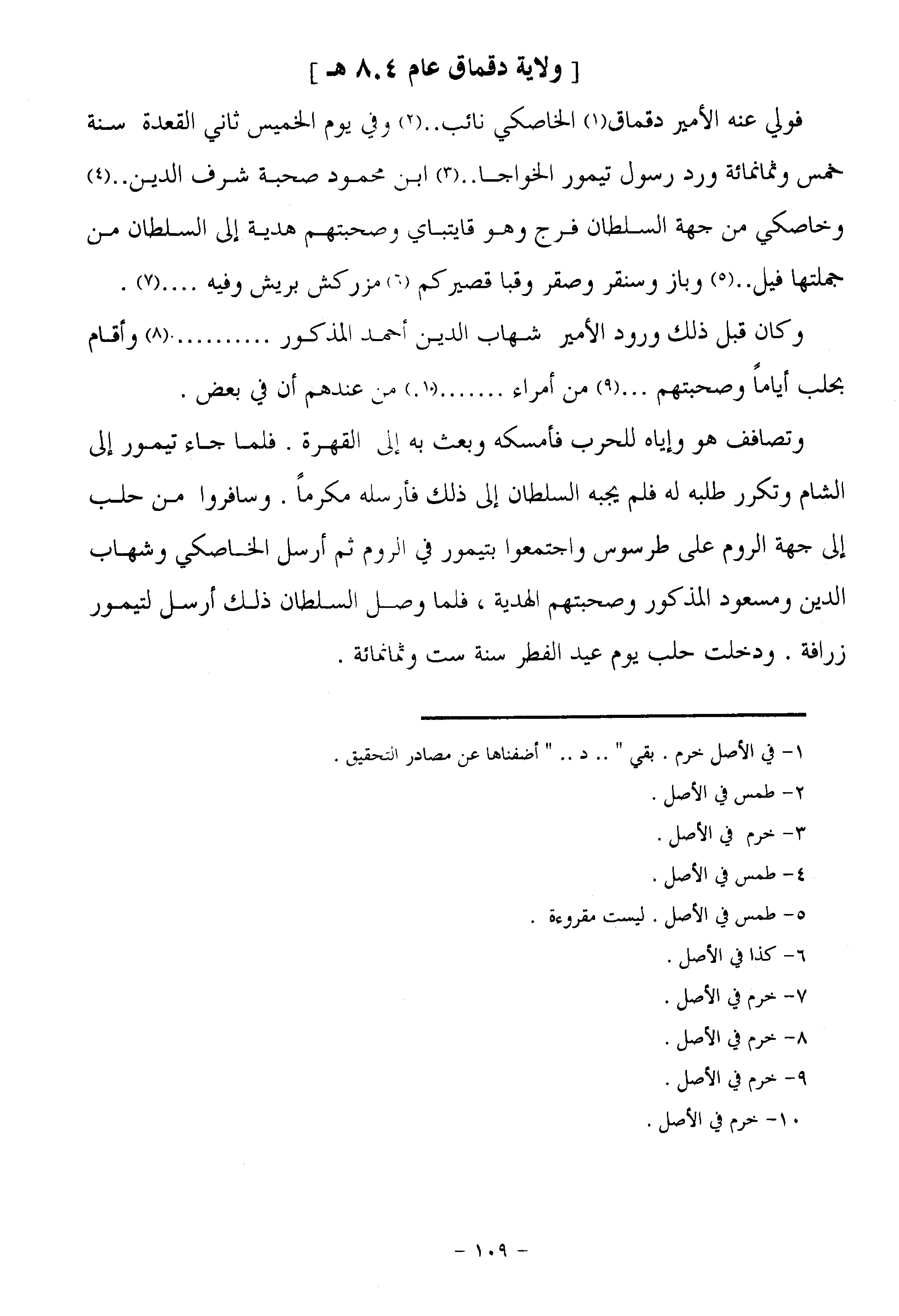 وكان قبل ذلك ورود الأمير شهاب الدين أحمد المذكور...... «8» وأقام بحلب أياما وصحبتهم ... «9» من أمراء..... «10» من عندهم أن في بعض.