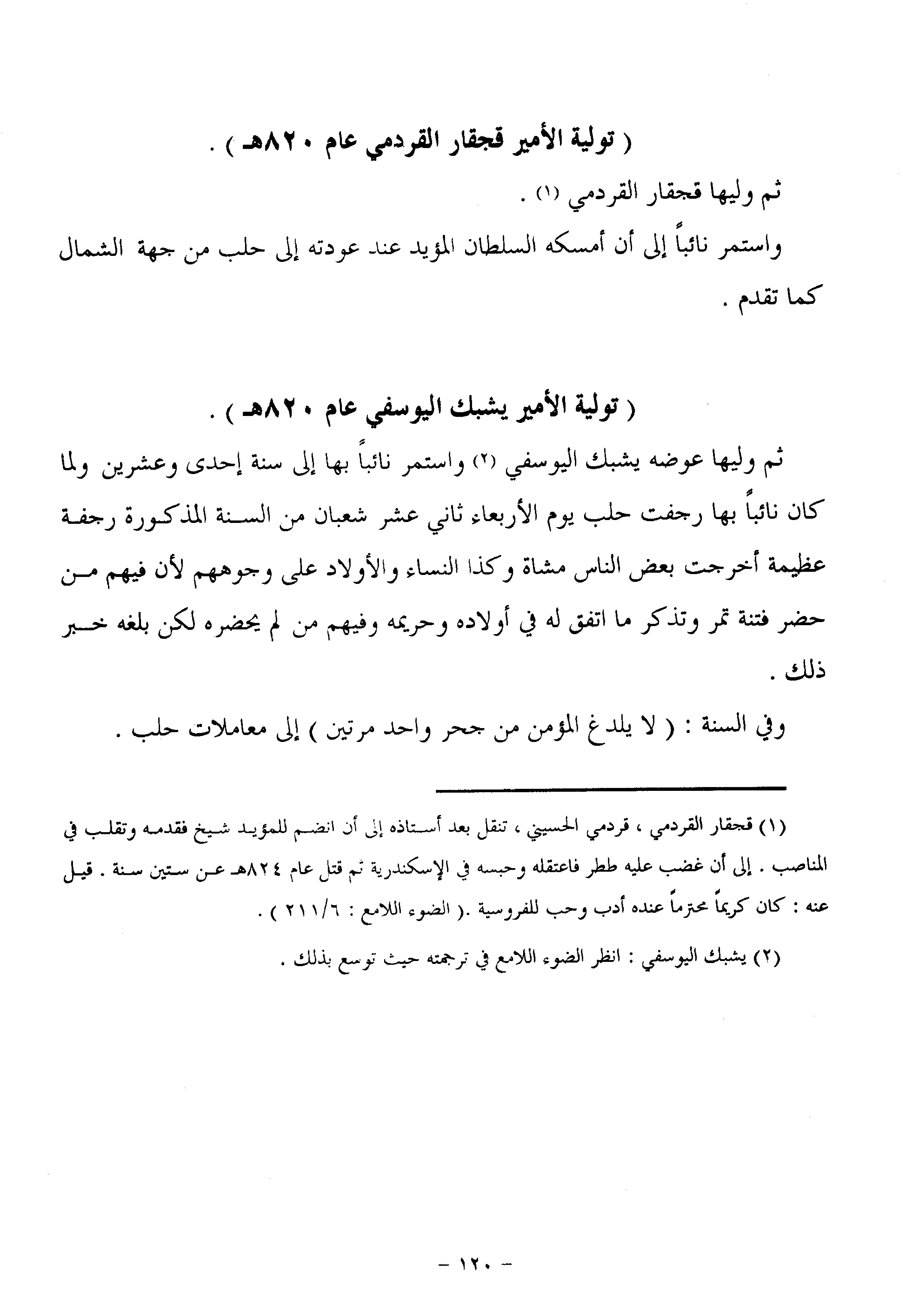 وفي السنة: (لا يلدغ المؤمن من جحر واحد مرتين) إلى معاملات حلب.