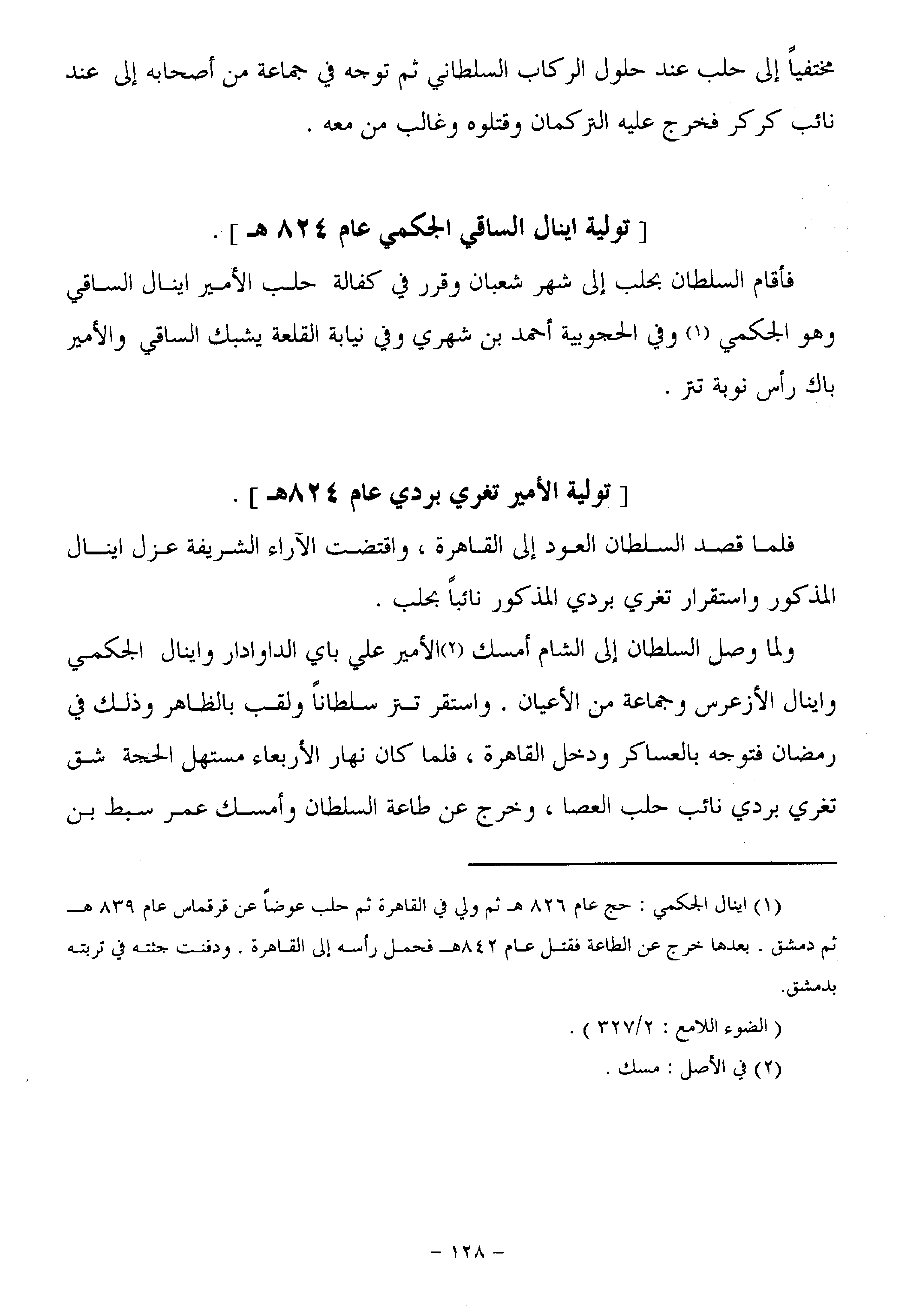 [تولية اينال الساقي الجكمي عام 824 هـ] .