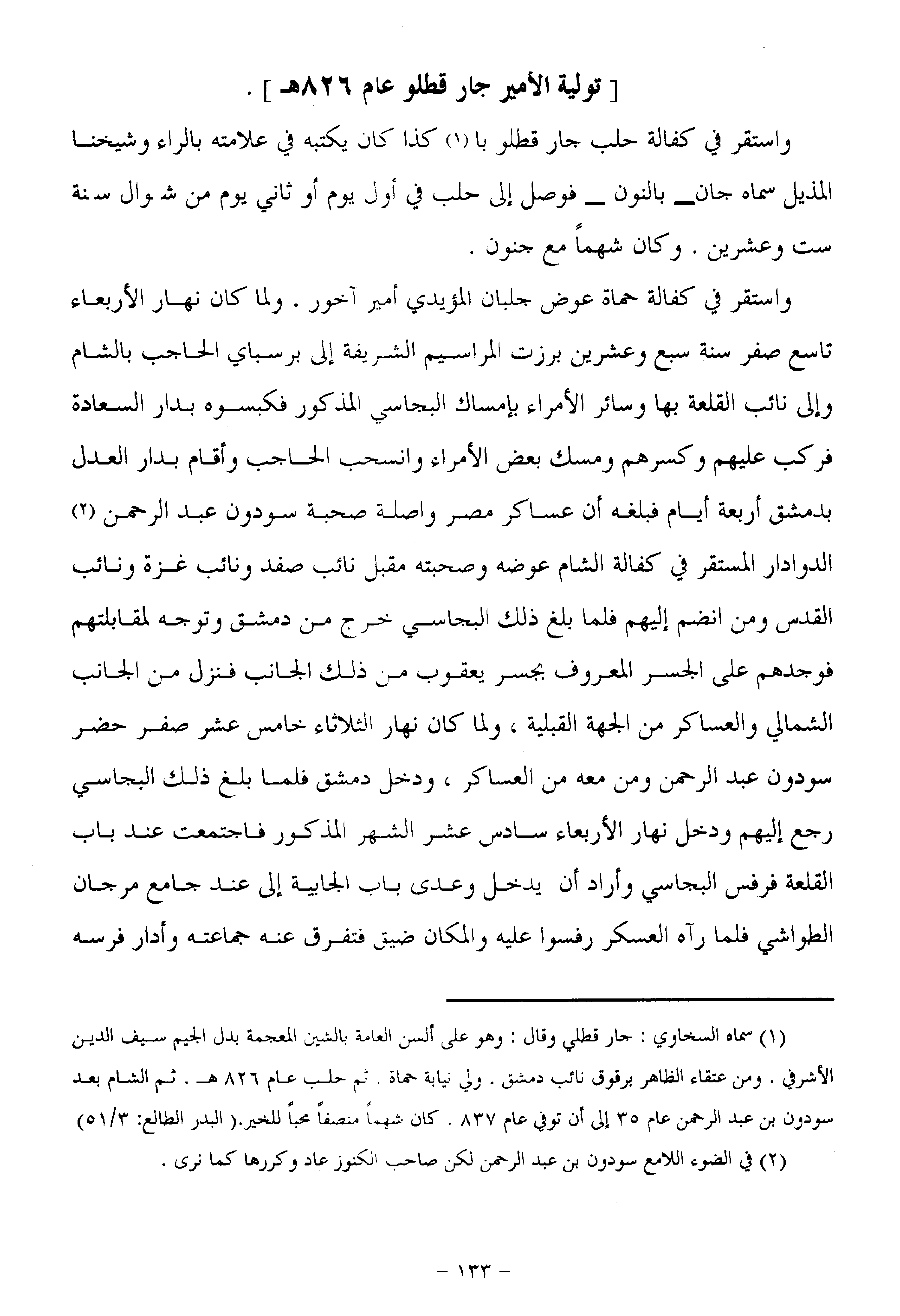 [تولية الأمير جار قطلو عام 826 هـ] .