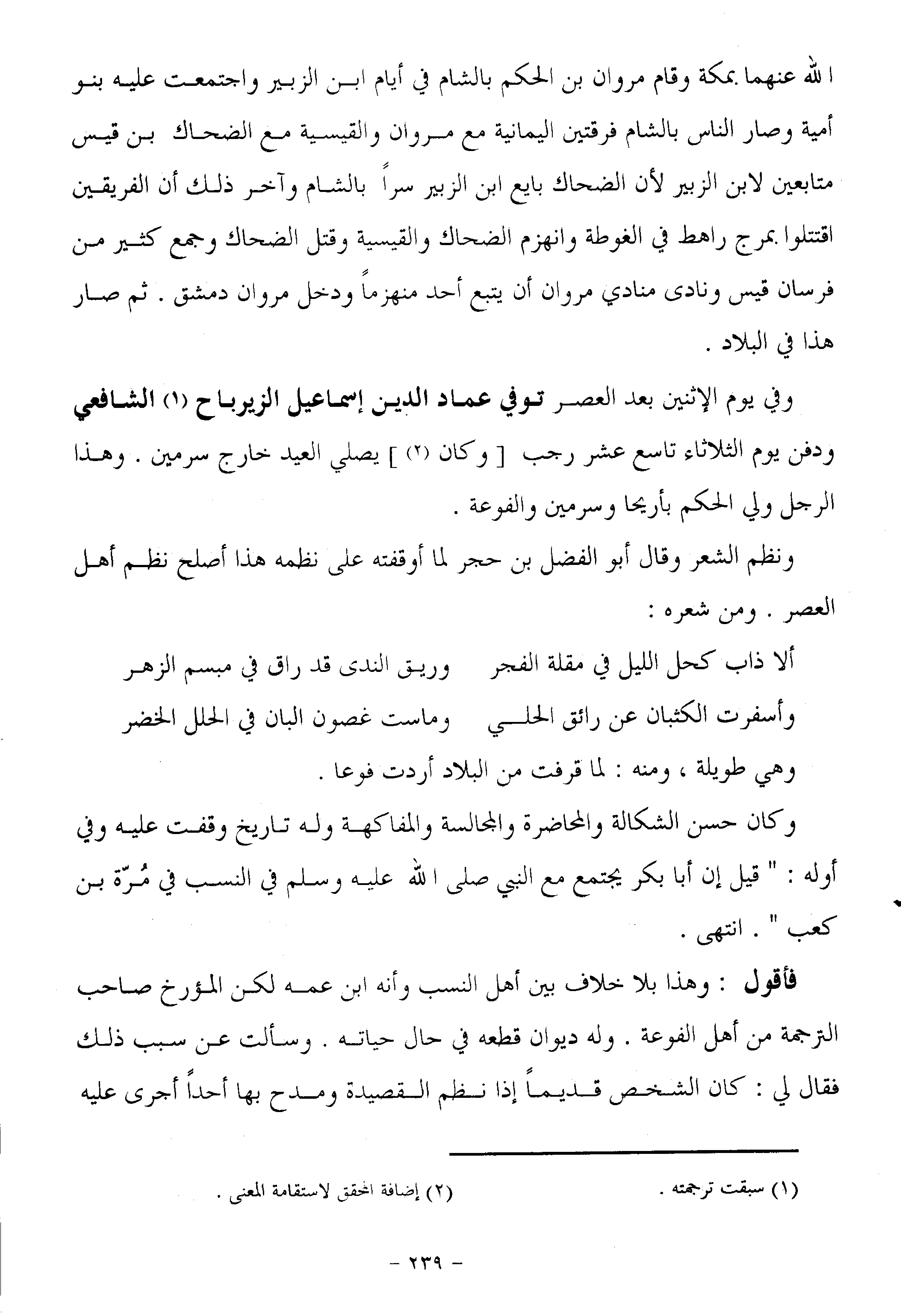 وفي يوم الاثنين بعد العصر توفي عماد الدين إسماعيل الزيرباح «1» الشافعي ودفن يوم الثلاثاء تاسع عشر رجب [وكان «2» ] يصلي العيد خارج سرمين. وهذا الرجل ولي الحكم بأريحا وسرمين والفوعة.