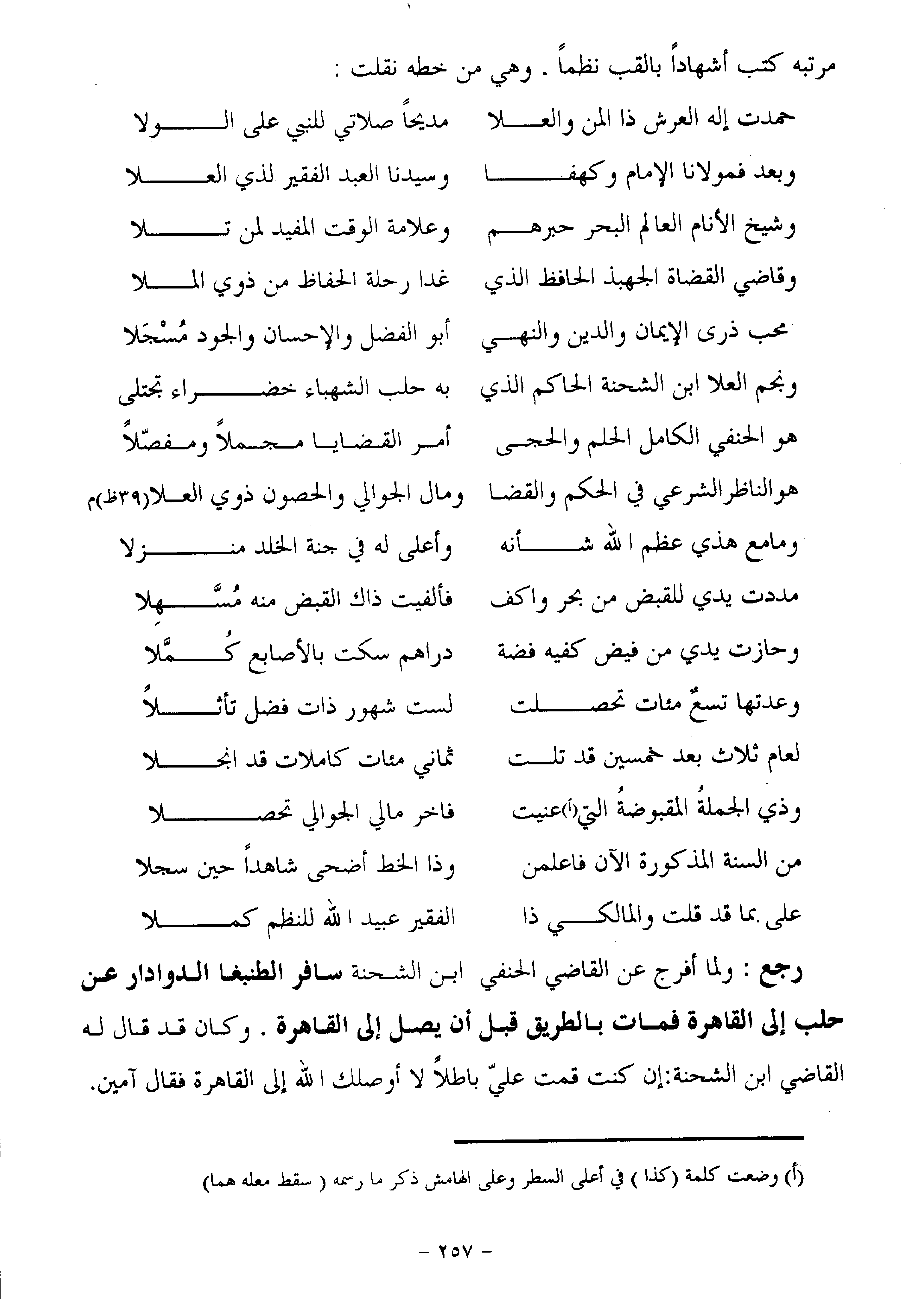مرتبه كتب أشهادا بالقب نظما. وهي من خطه نقلت: