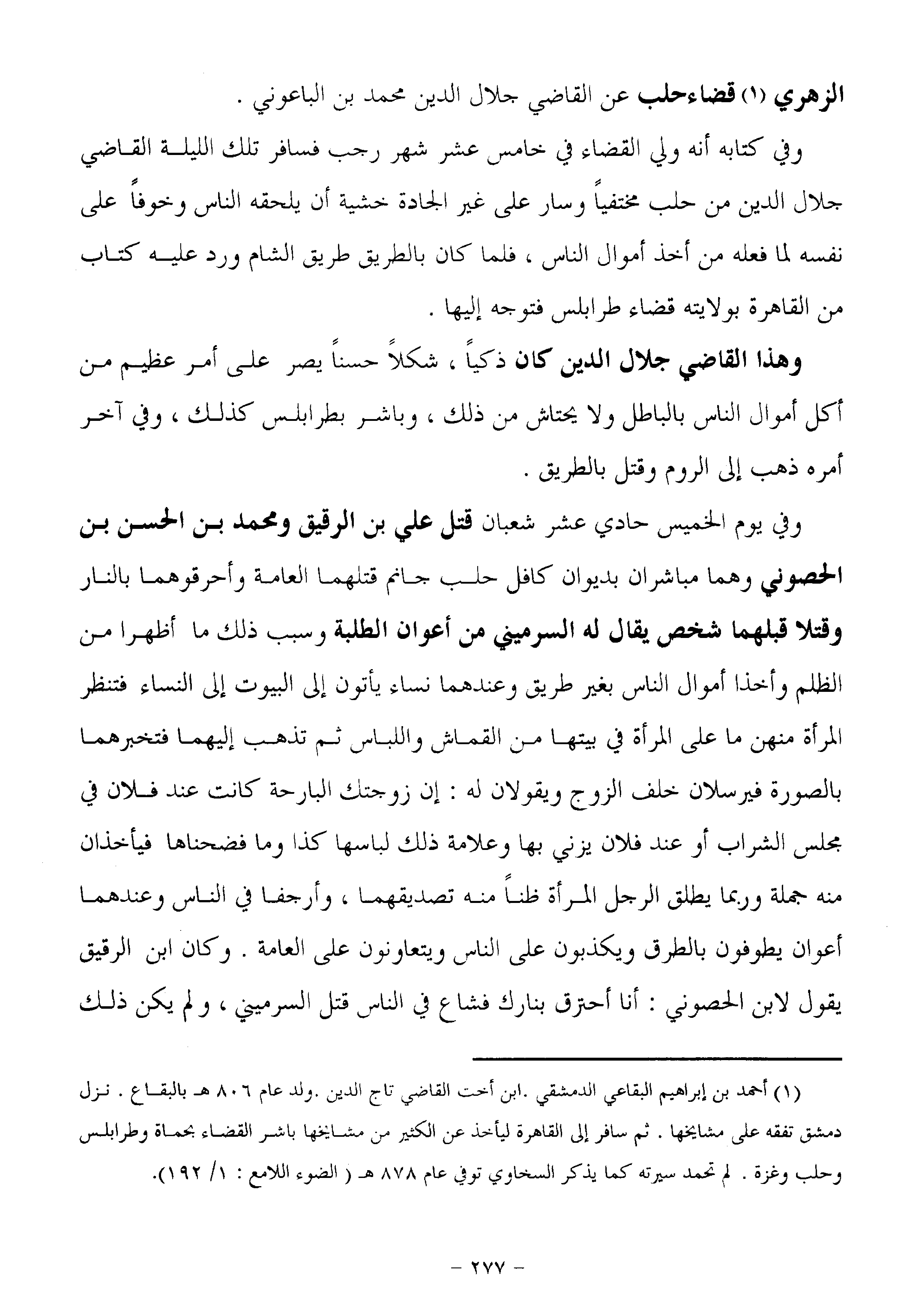 الزهري «1» قضاء حلب عن القاضي جلال الدين محمد بن الباعوني.