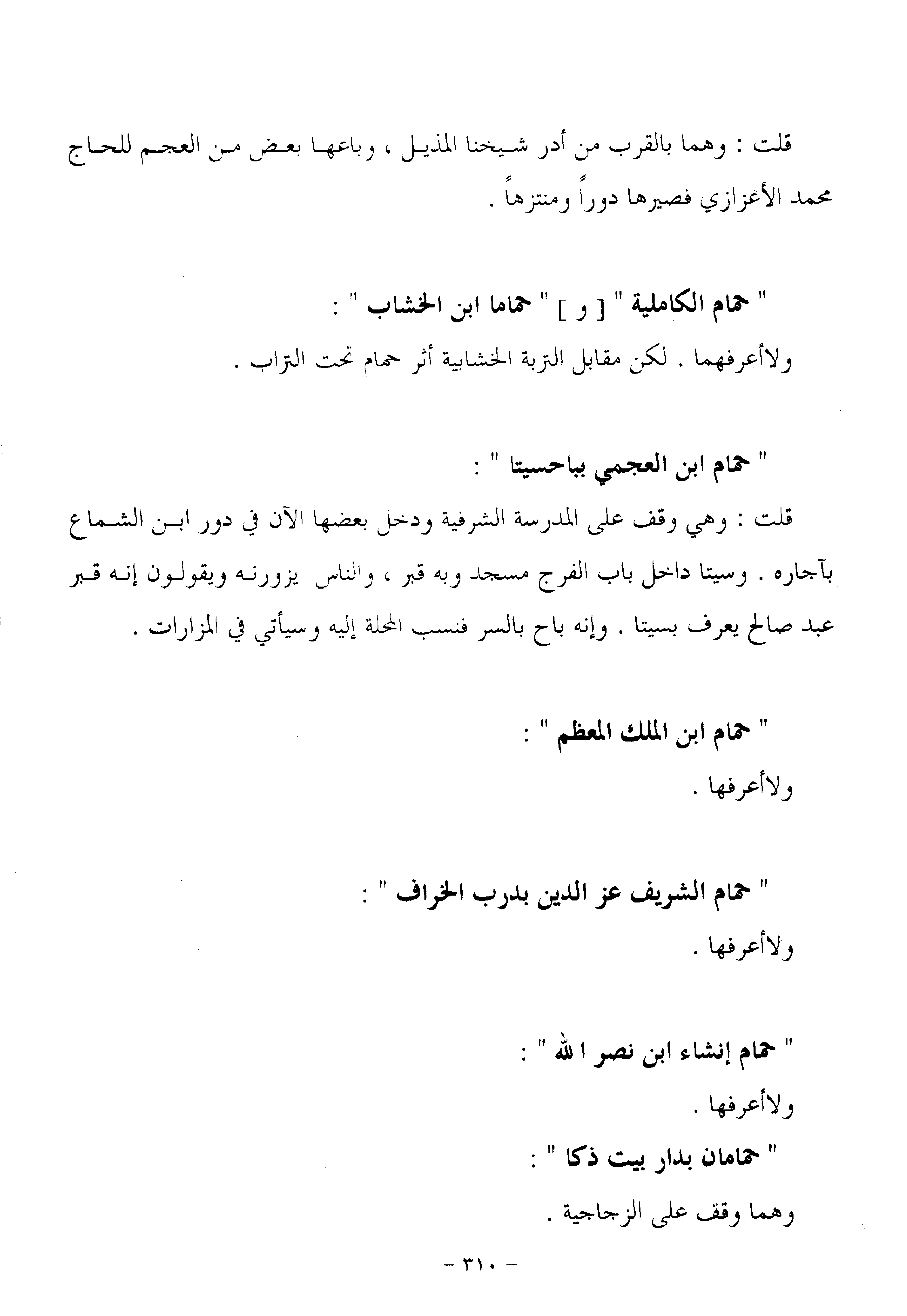 " حمام الكاملية" [و] " حماما ابن الخشاب":