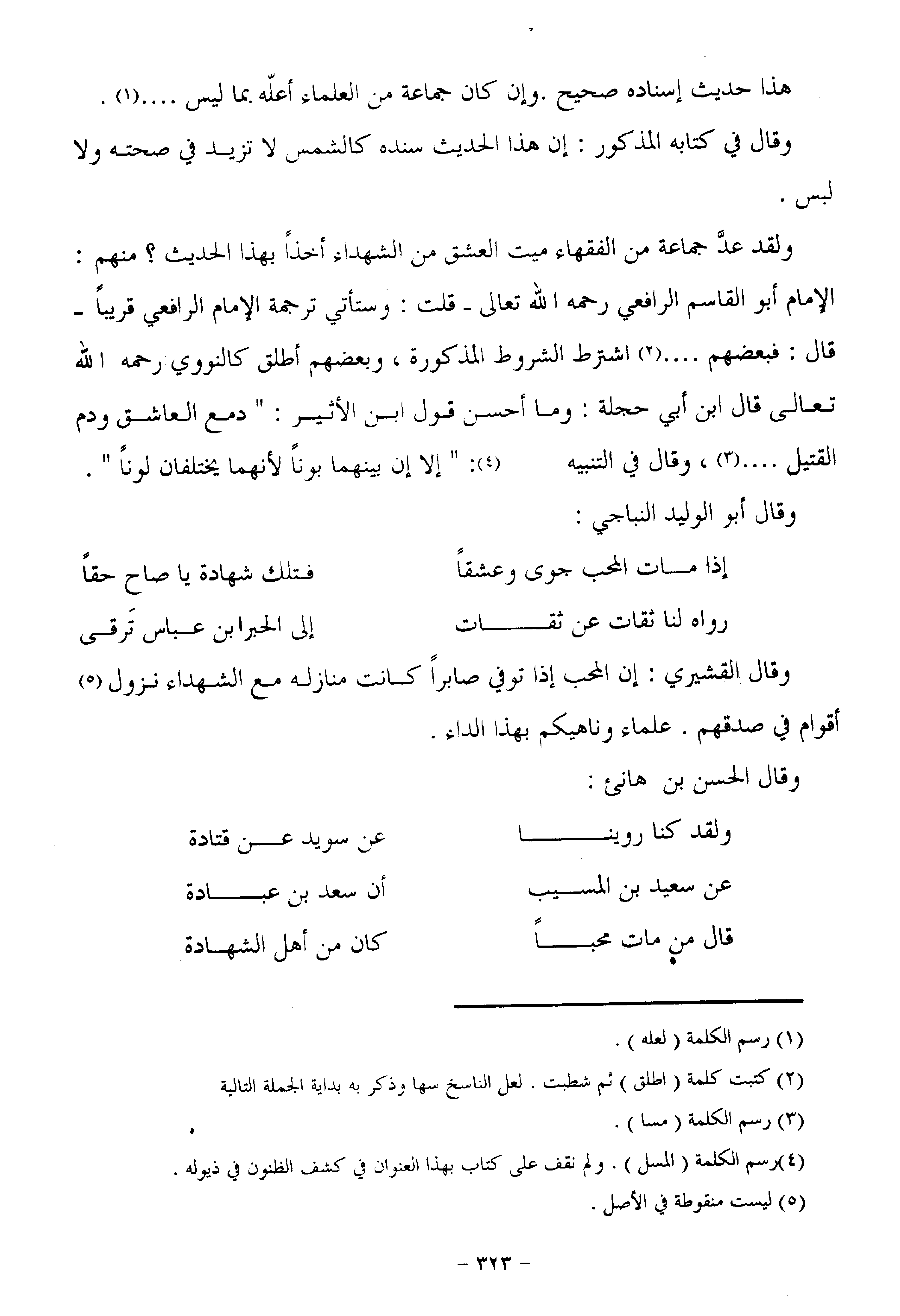 ولقد عدّ جماعة من الفقهاء ميت العشق من الشهداء أخذا بهذا الحديث؟ منهم: