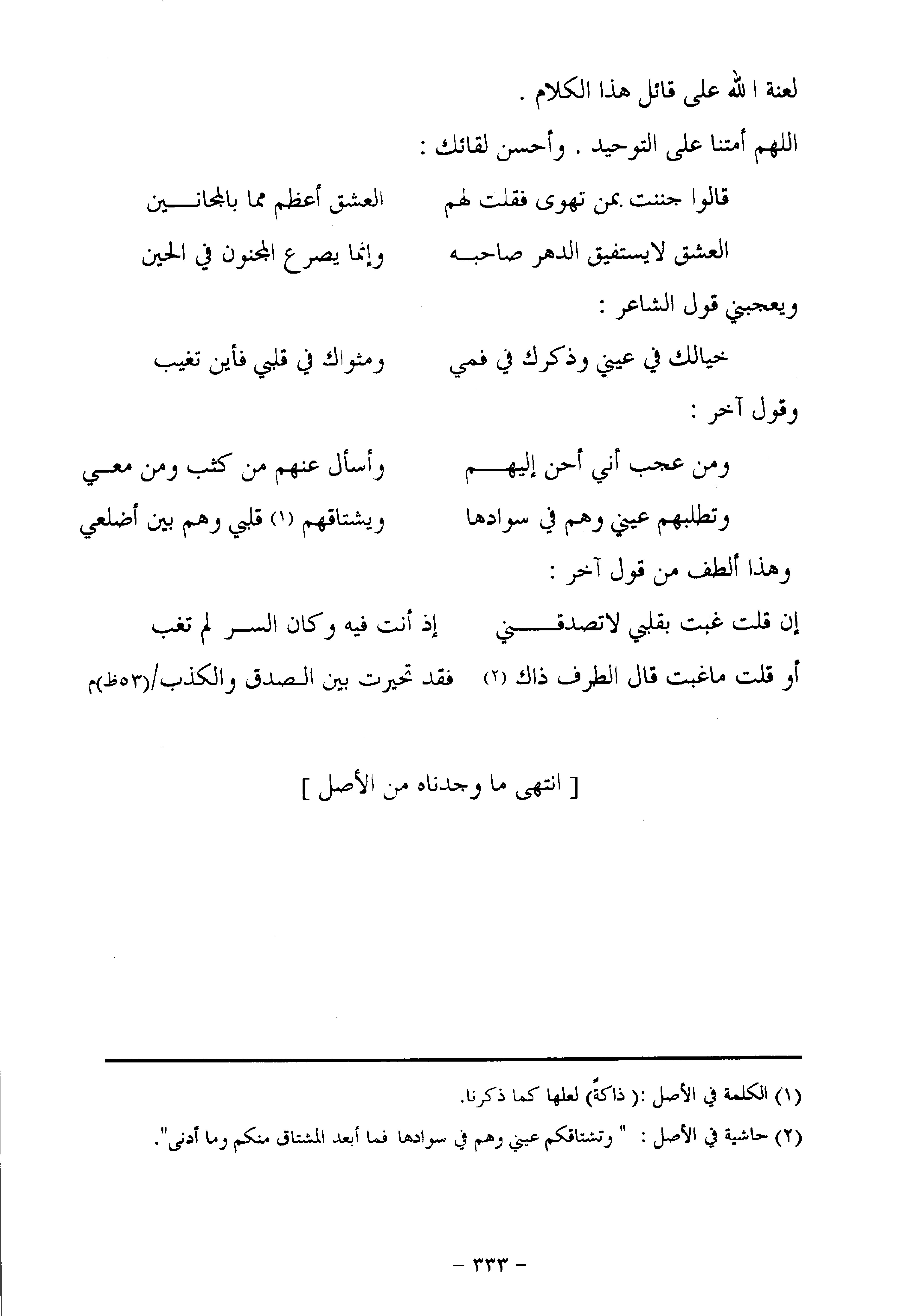 قالوا جننت بمن تهوى فقلت لهم ... العشق أعظم مما بالمجانين