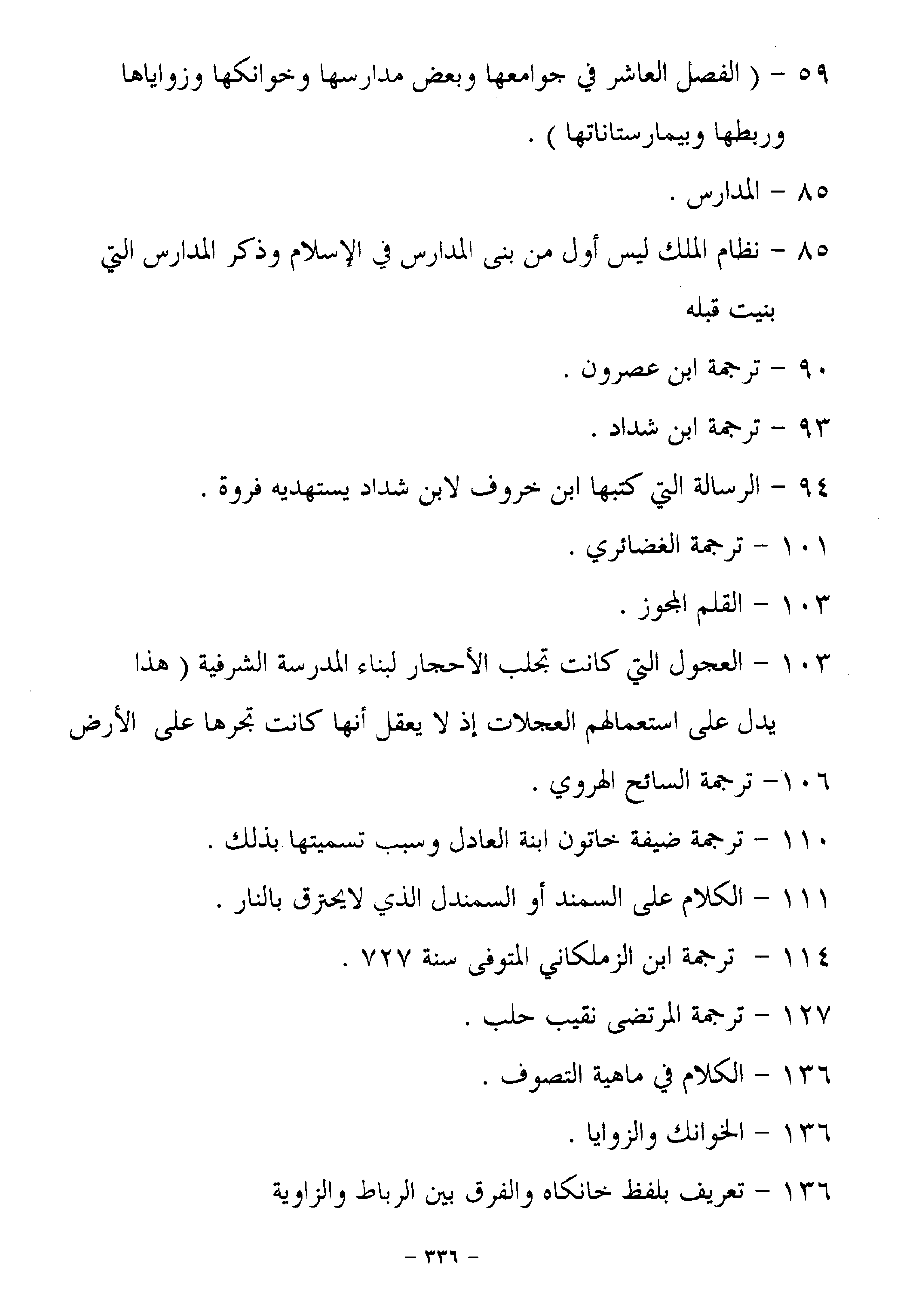 59- (الفصل العاشر في جوامعها وبعض مدارسها وخوانكها وزواياها وربطها وبيمارستاناتها) .