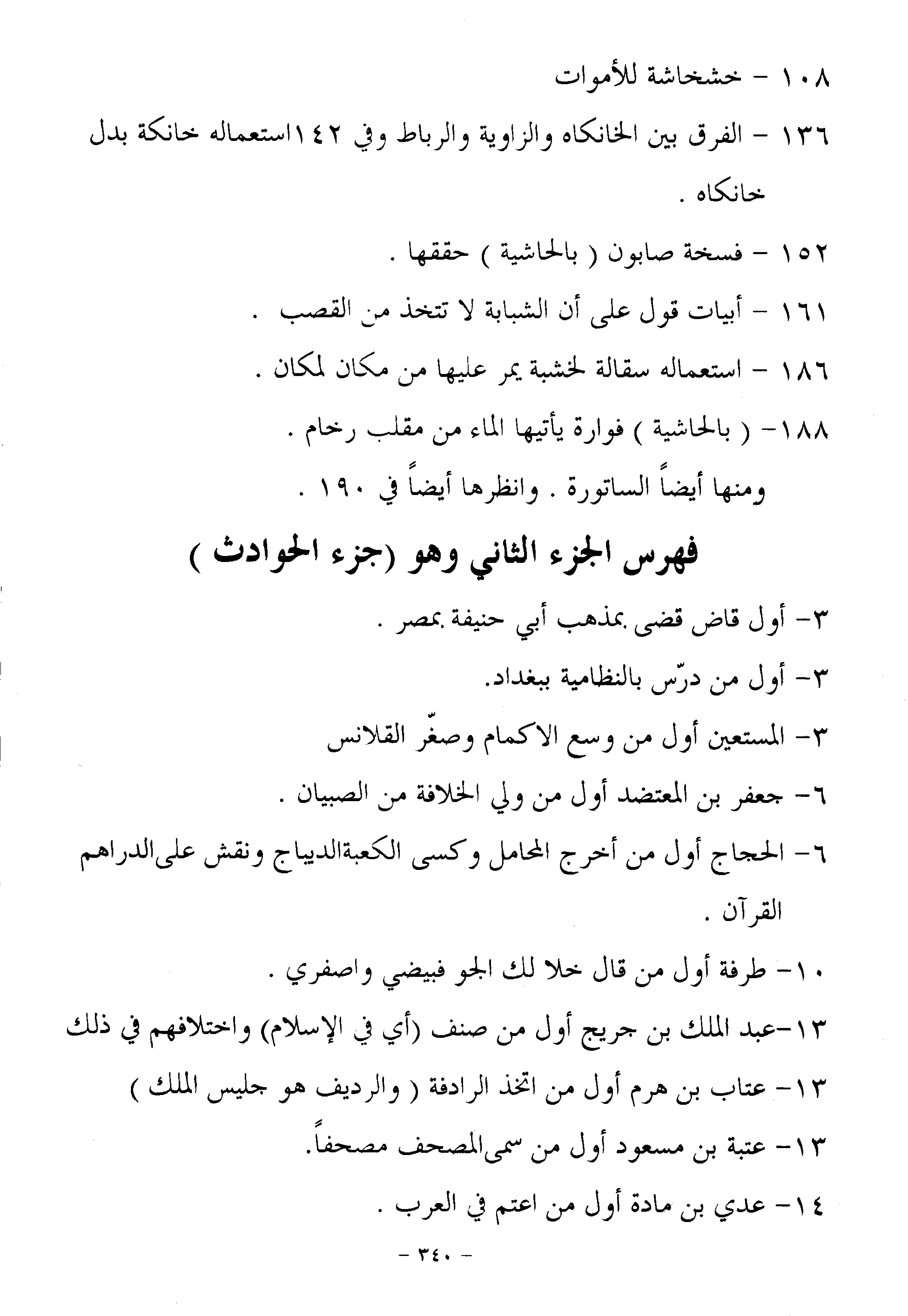 فهرس الجزء الثاني وهو (جزء الحوادث)
