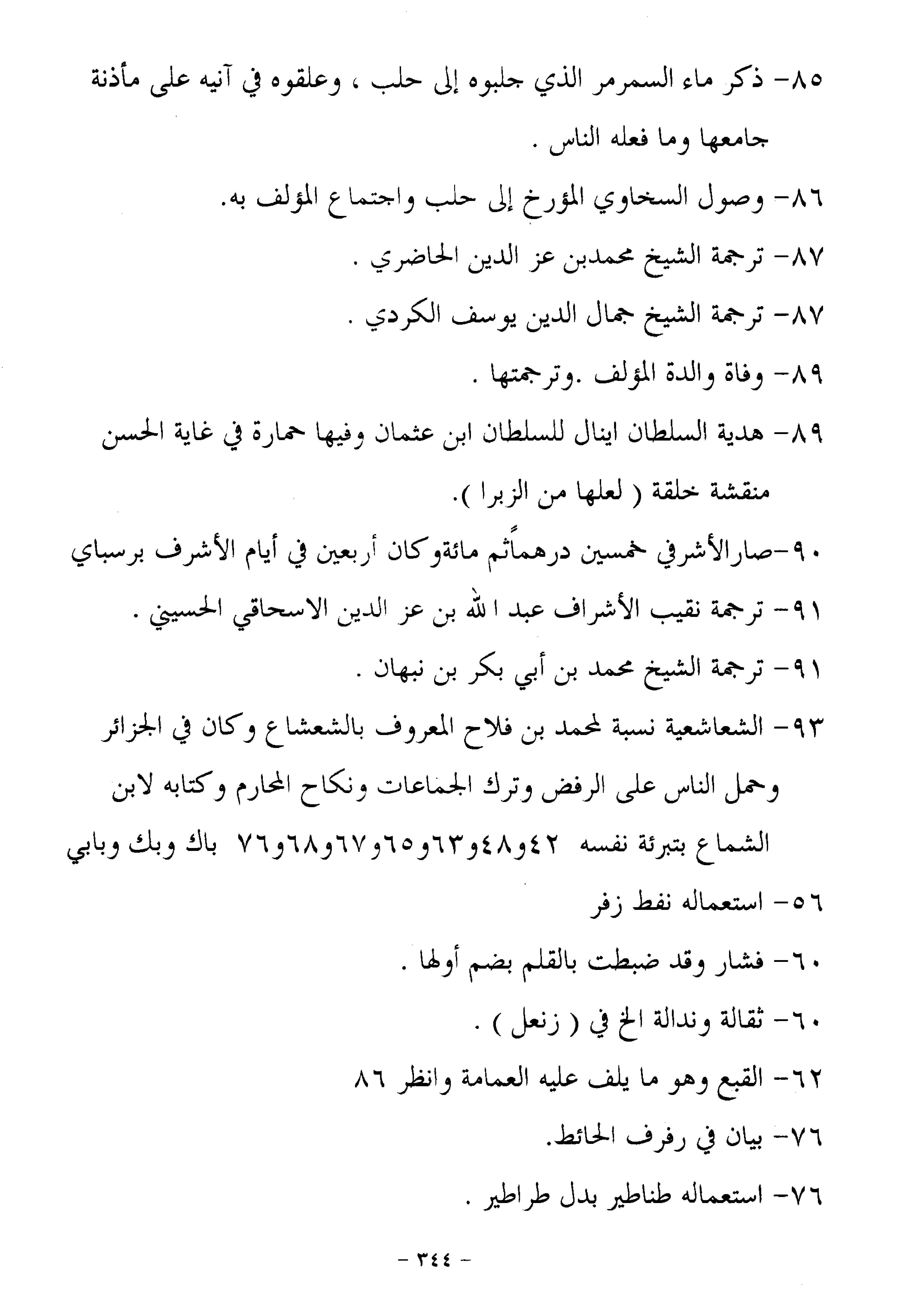 93- الشعاشعية نسبة لمحمد بن فلاح المعروف بالشعشاع وكان في الجزائر وحمل الناس على الرفض وترك الجماعات ونكاح المحارم وكتابه لابن الشماع بتبرئة نفسه 42 و 48 و 63 و 65 و 67 و 68 و 76 باك وبك وبابي