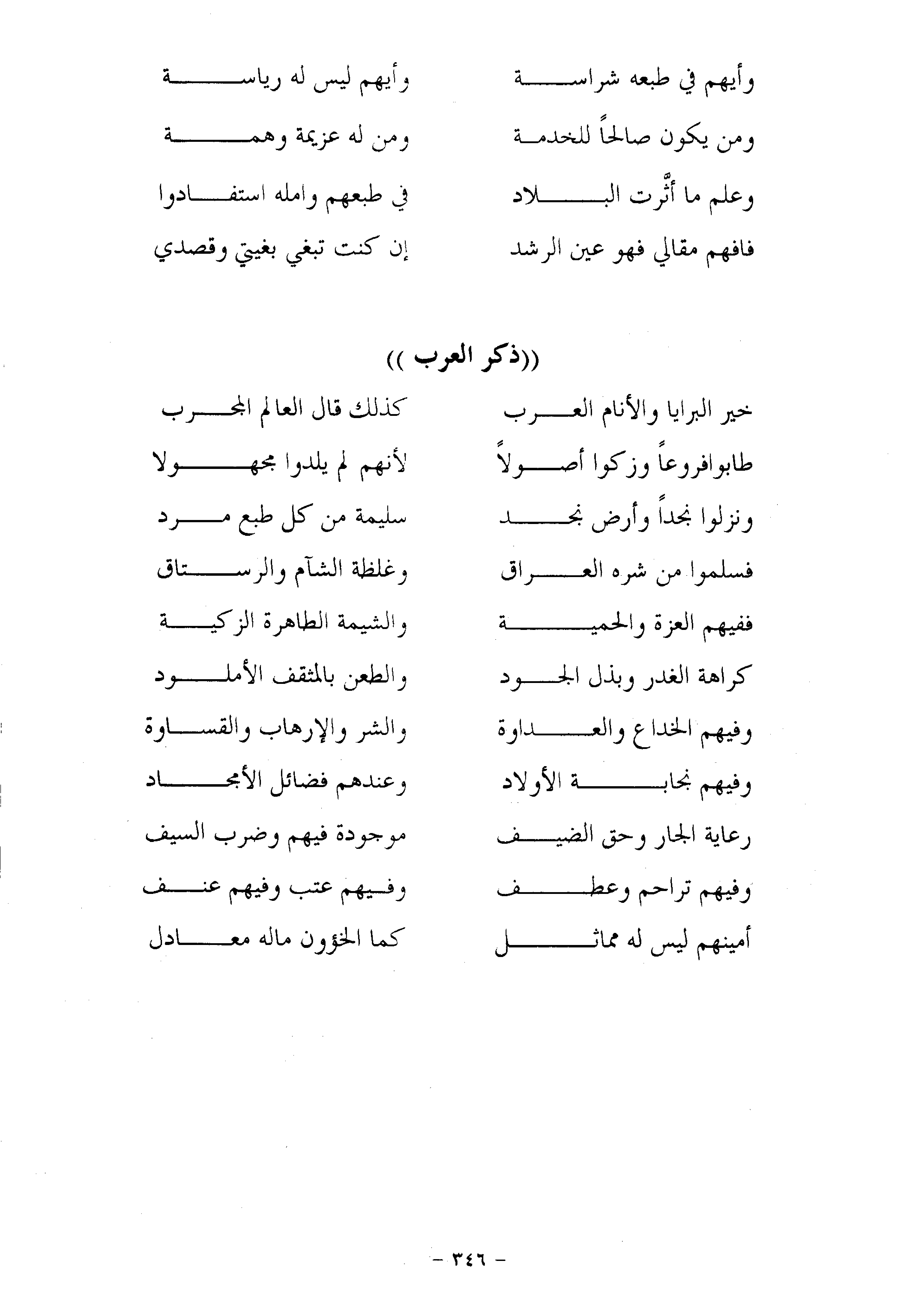 خير البرايا والأنام العرب ... كذلك قال العالم المجرب