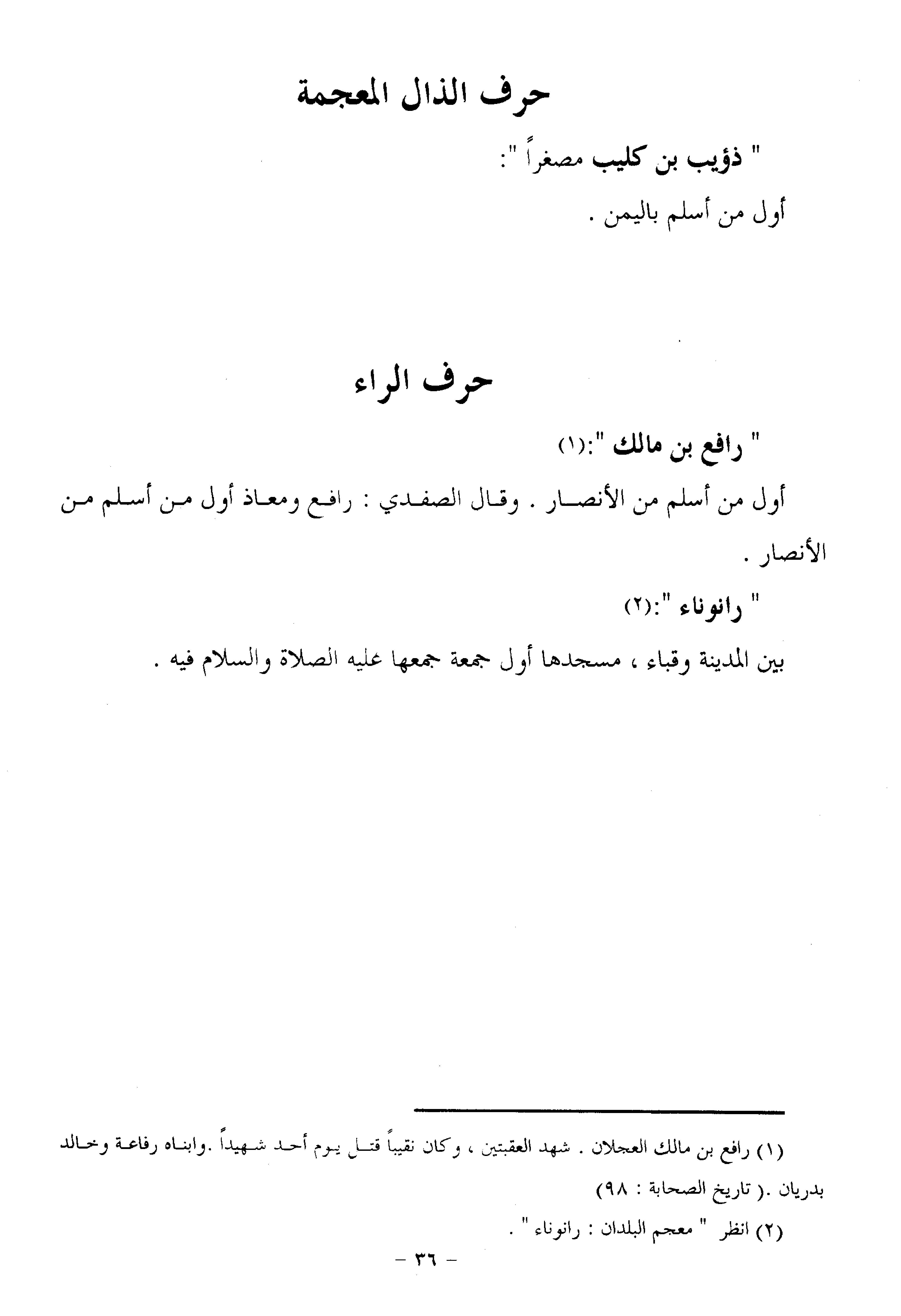 أول من أسلم من الأنصار. وقال الصفدي: رافع ومعاذ أول من أسلم من الأنصار.