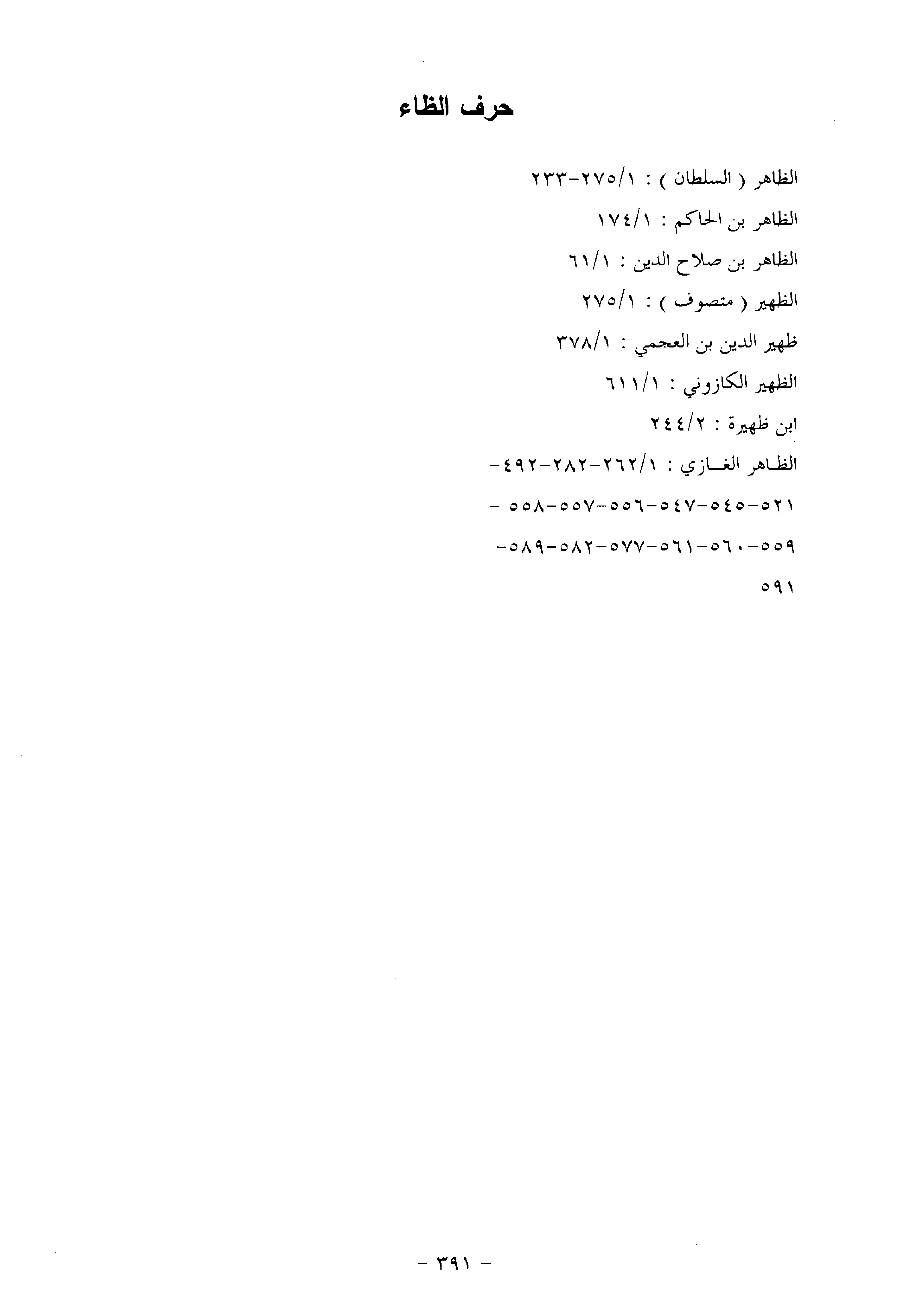 حرف الظاء الظاهر (السلطان) : 1/275- 233