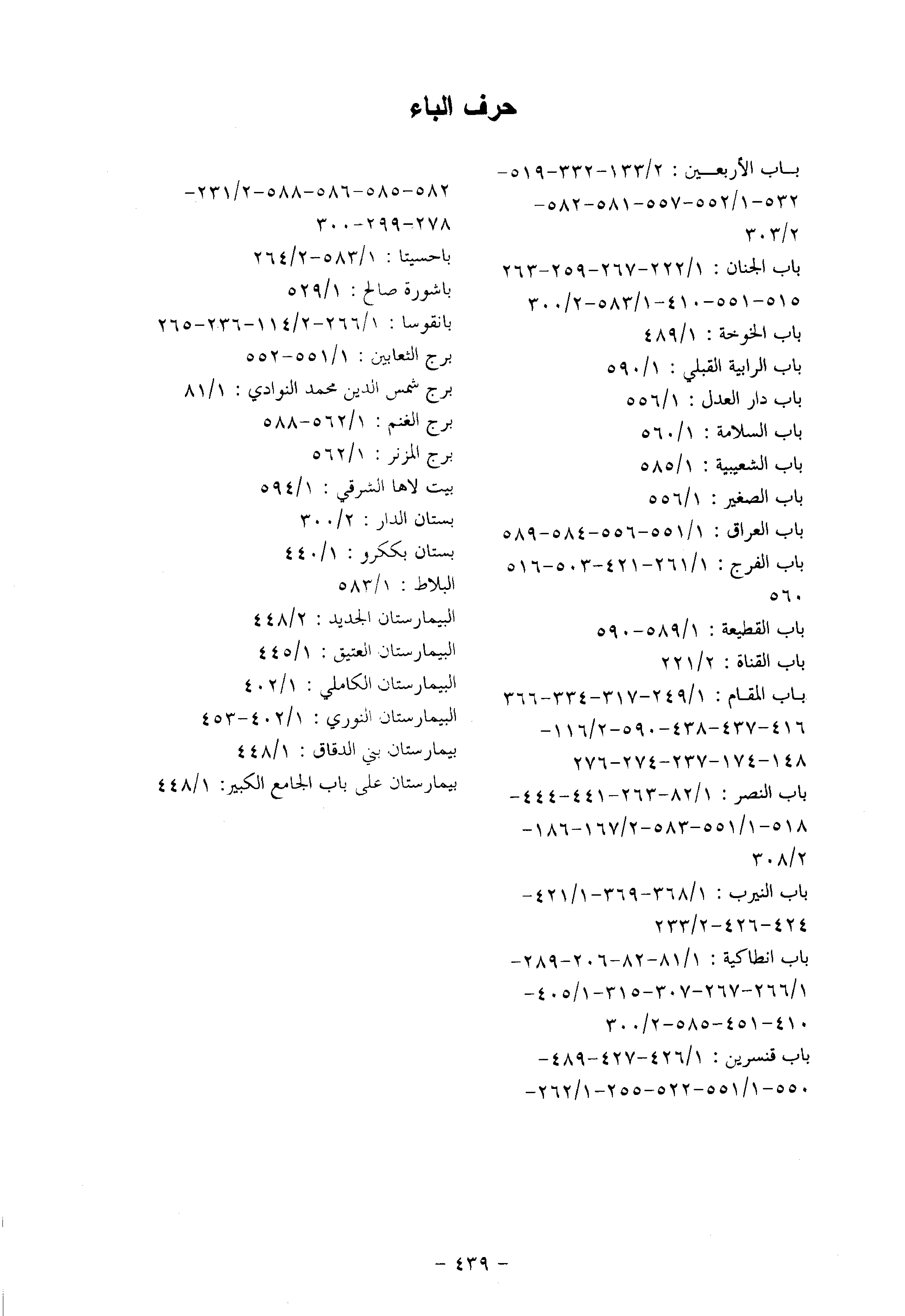 باب قنسرين: 1/426- 427- 489- 550- 1/551- 522- 255- 1/262-