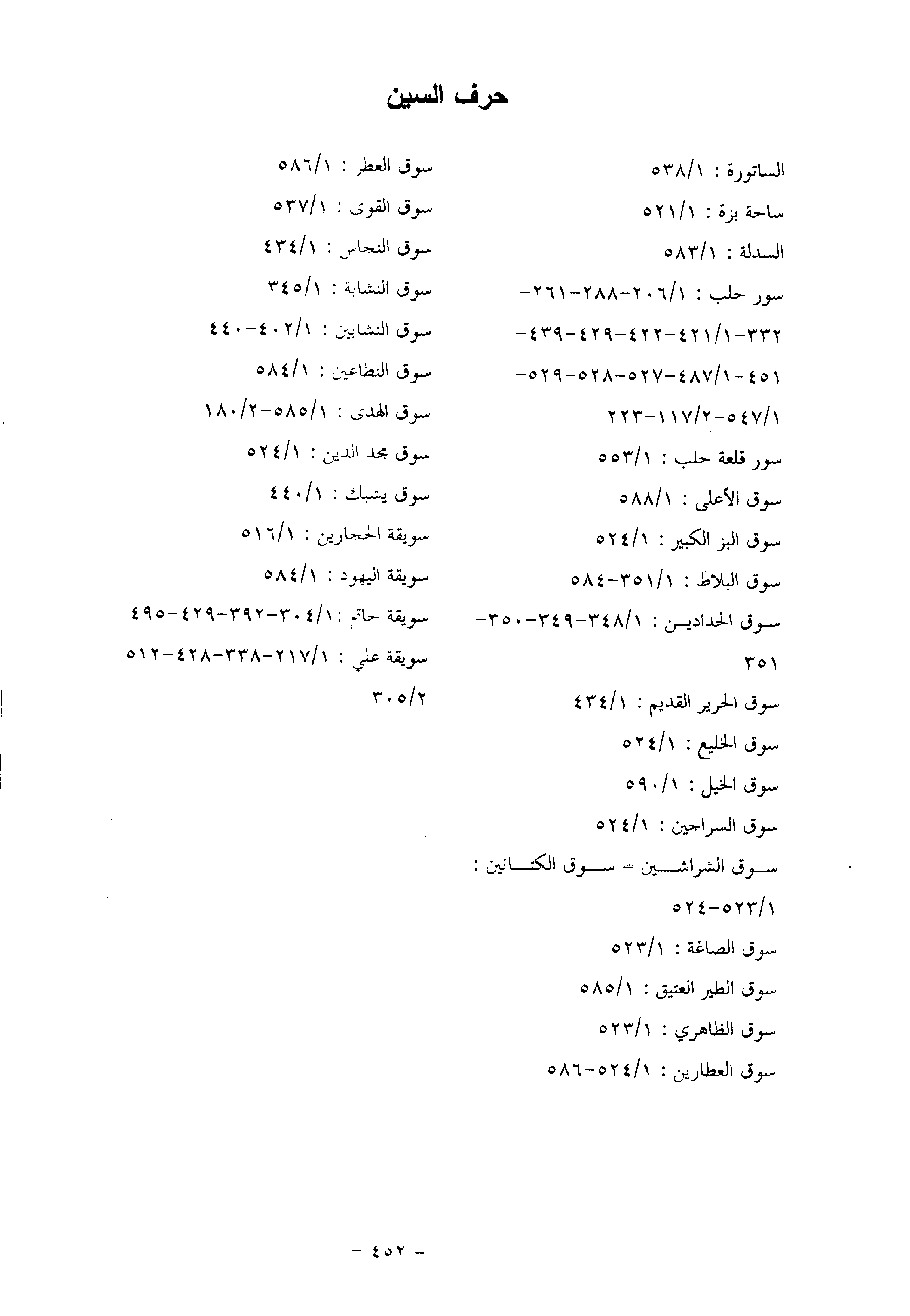 سور حلب: 1/206- 288- 261- 332- 1/421- 422- 429- 439- 451- 1/487- 527- 528- 529- 1/547- 2/117- 223