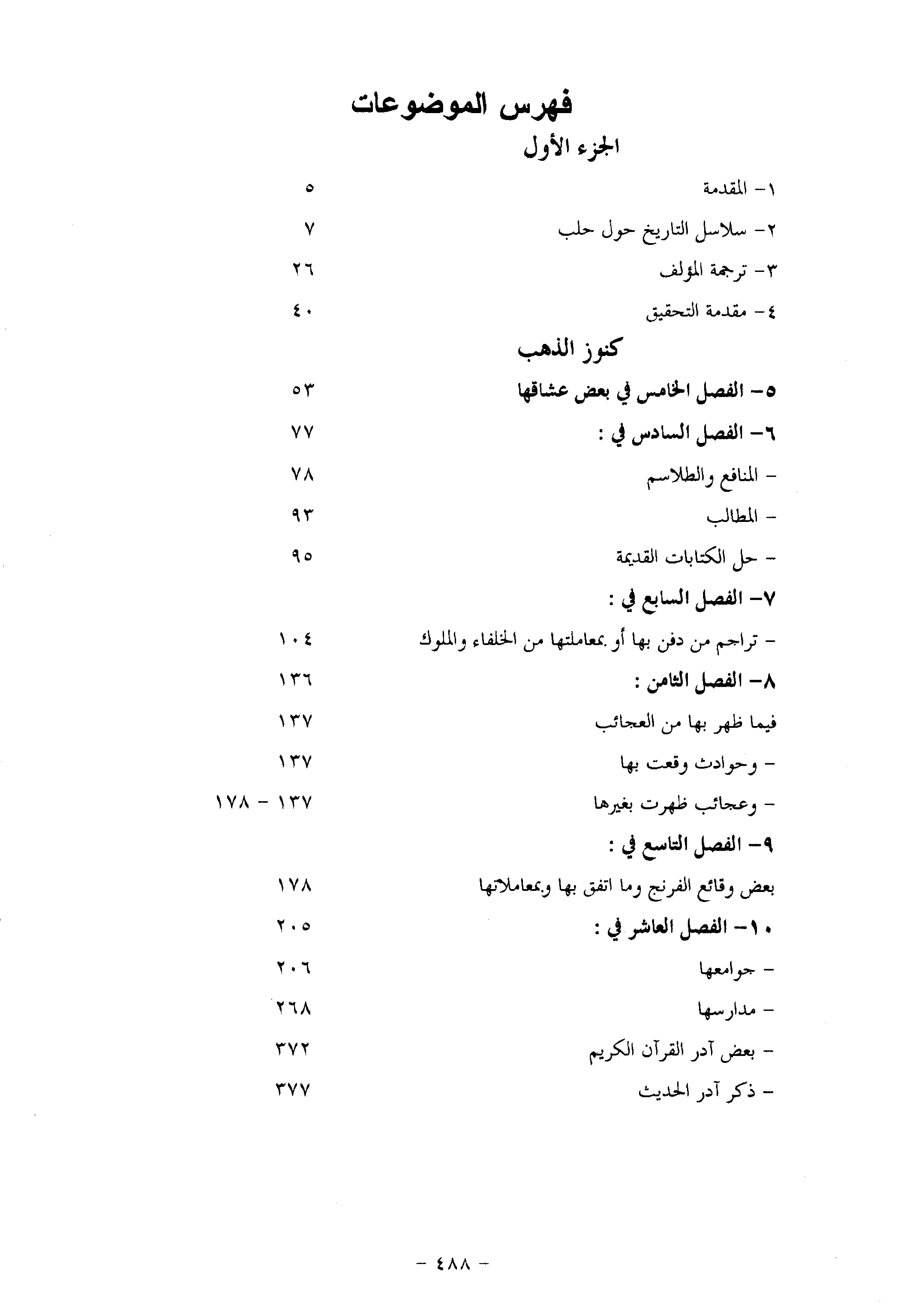10- الفصل العاشر في: 205- جوامعها 206- مدارسها 268- بعض آدر القرآن الكريم 372- ذكر آدر الحديث 377