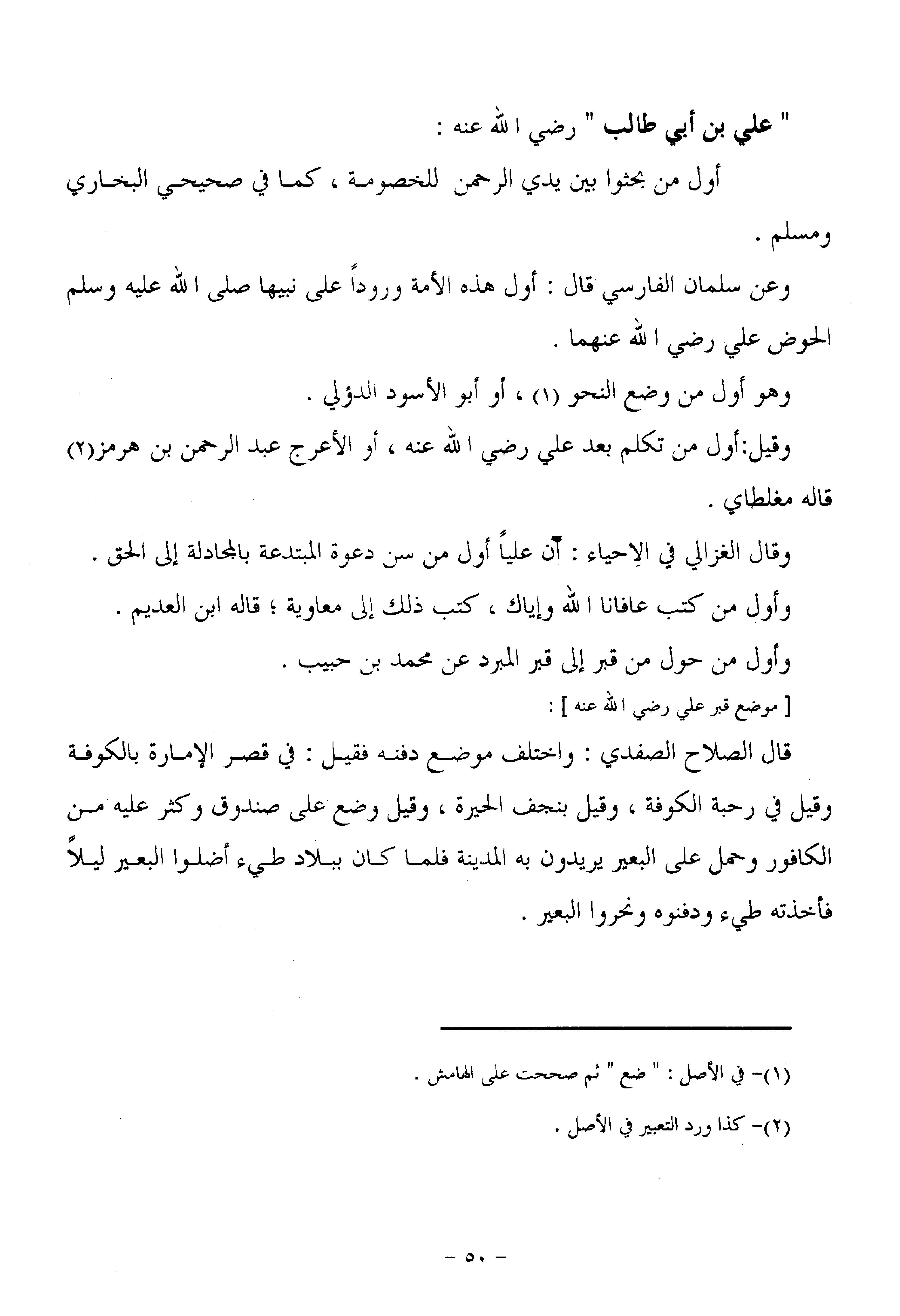 وقيل: أول من تكلم بعد علي رضي الله عنه، أو الأعرج عبد الرحمن بن هرمز «2» قاله مغلطاي.