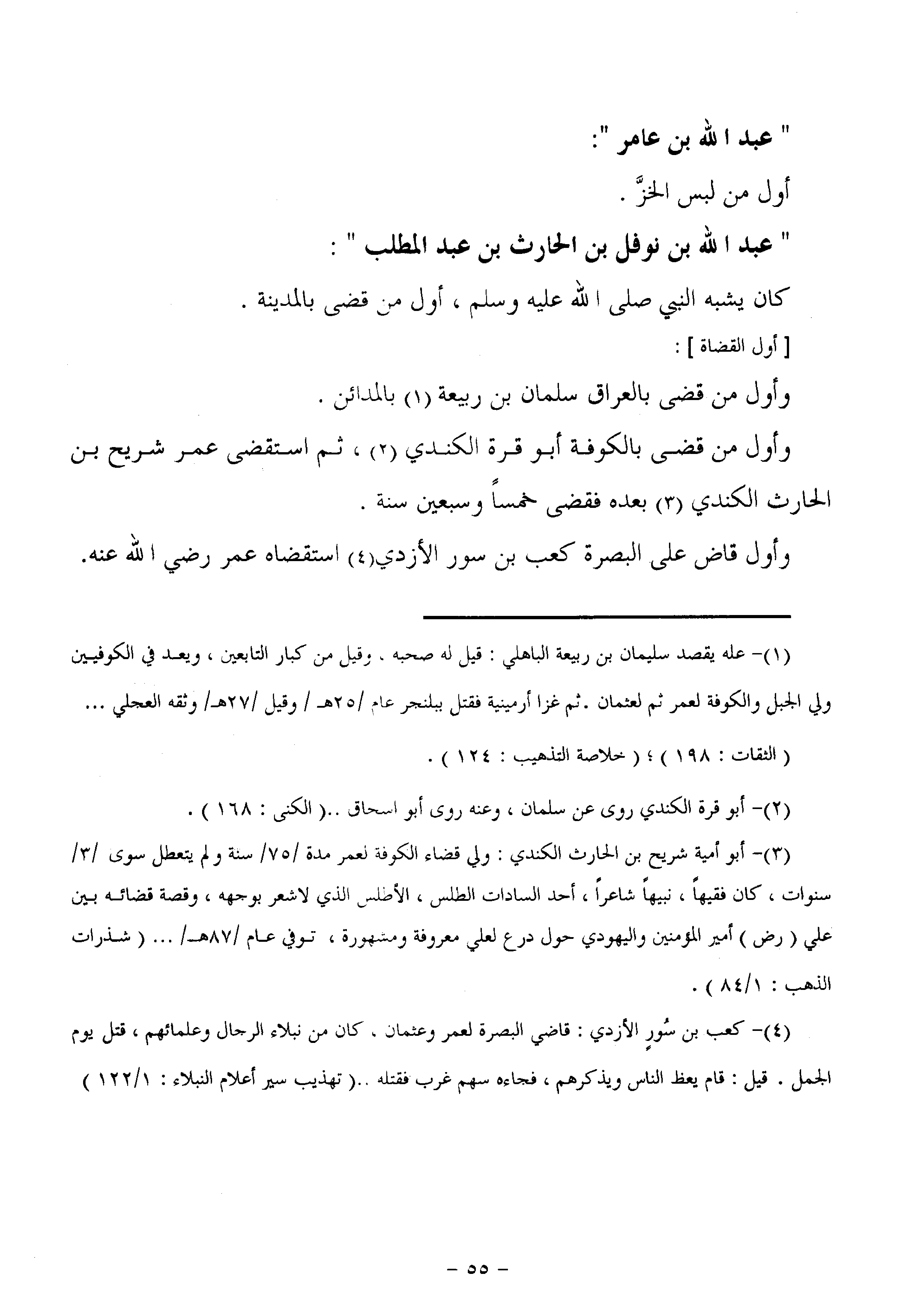 وأول قاض على البصرة كعب بن سور الأزدي «4» استقضاه عمر رضي الله عنه.
