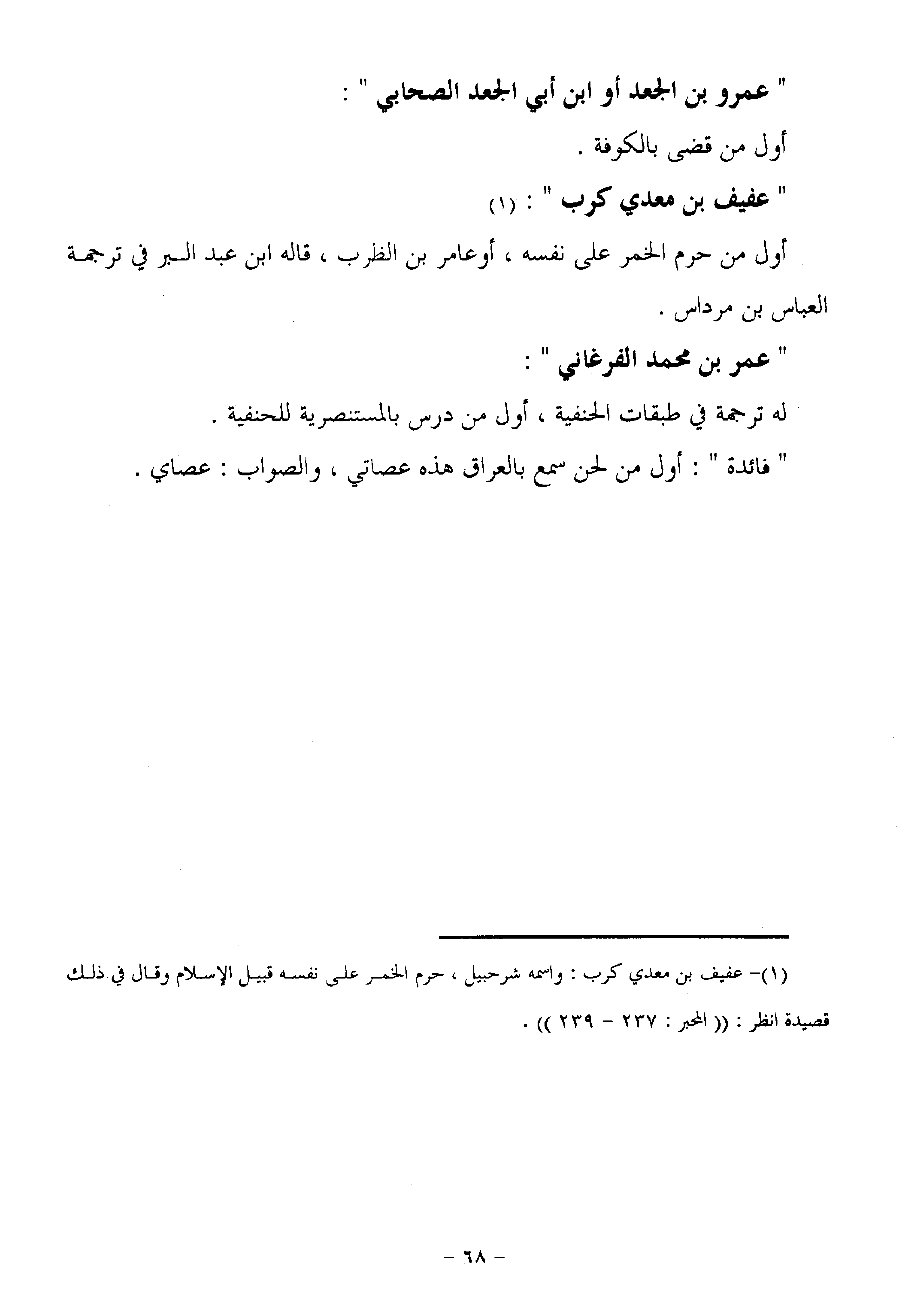 أول من حرم الخمر على نفسه، أو عامر بن الظرب، قاله ابن عبد البر في ترجمة العباس بن مرداس.